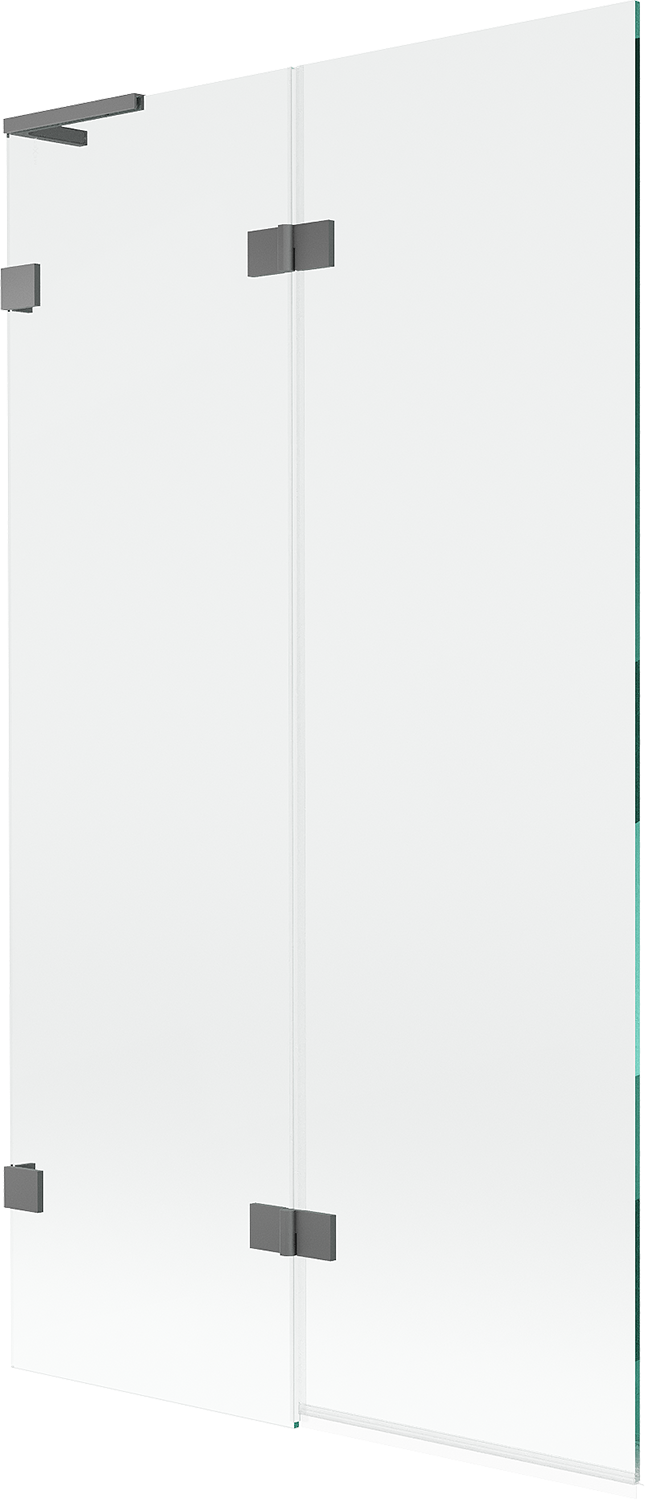 Skärmvägg tillverkad av två vingar med möjlighet att fällas ihop. En sådan lösning sparar mer utrymme i badrummet och möjliggör fri användning av det återstående utrymmet när vi inte använder badzonen.