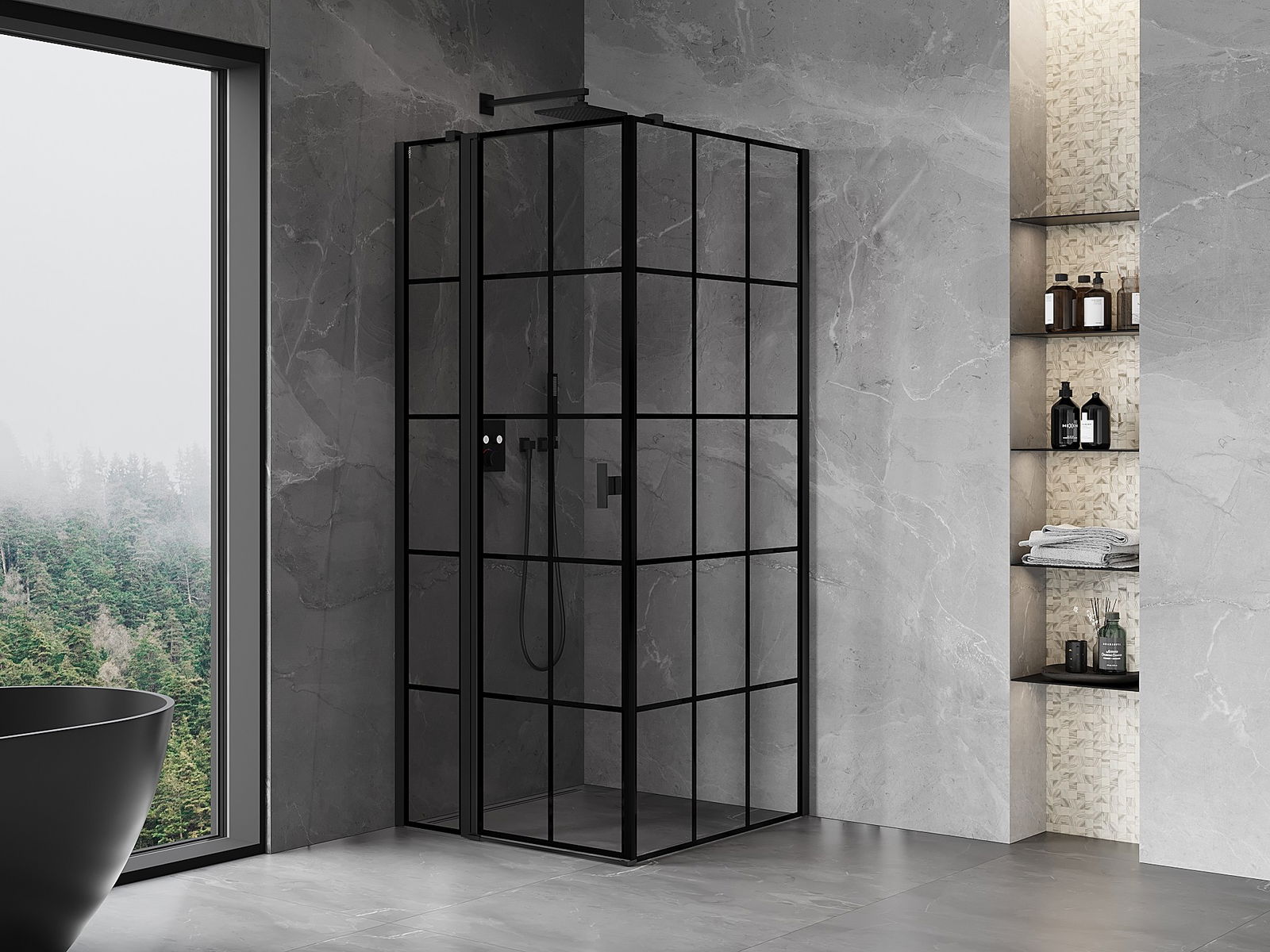 Mexen Mist T duschkabin, svängbar vänster 100 x 100 cm, svart rutmönster, svart - 8A4T-100-100-70-77-L