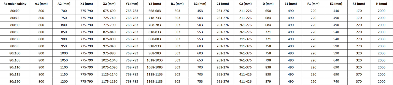 Svangdörrar möjliggör maximal frihet under användning. De har robusta gångjärn tillverkade av hållbart material, som är lätta att hålla rena och ger enkel tillgång till kabinens insida.