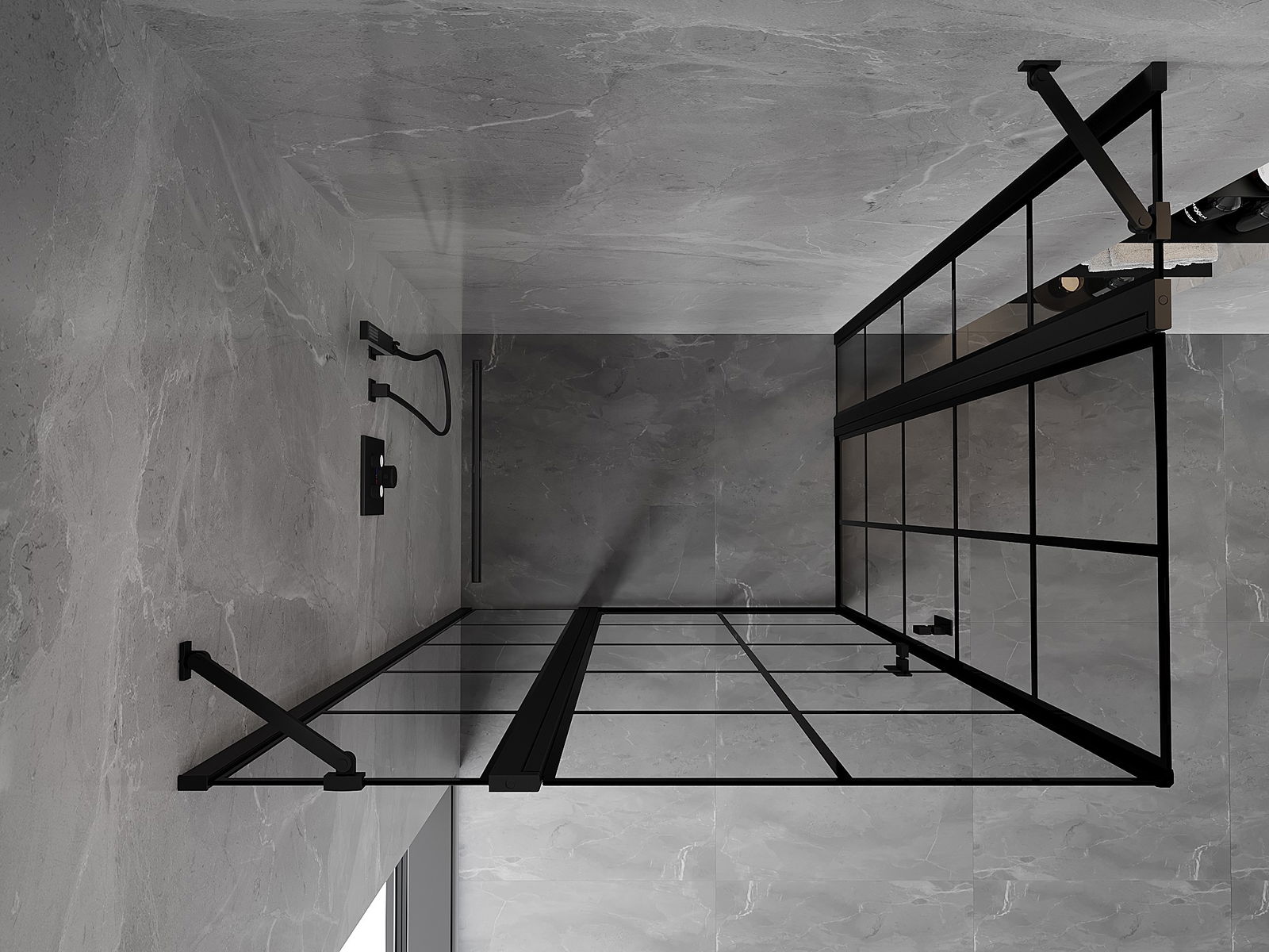 Mexen Mist Duo duschkabin med svängbara dörrar 95 x 80 cm, svart rutmönster, svart - 8A4-095L-080P-70-77