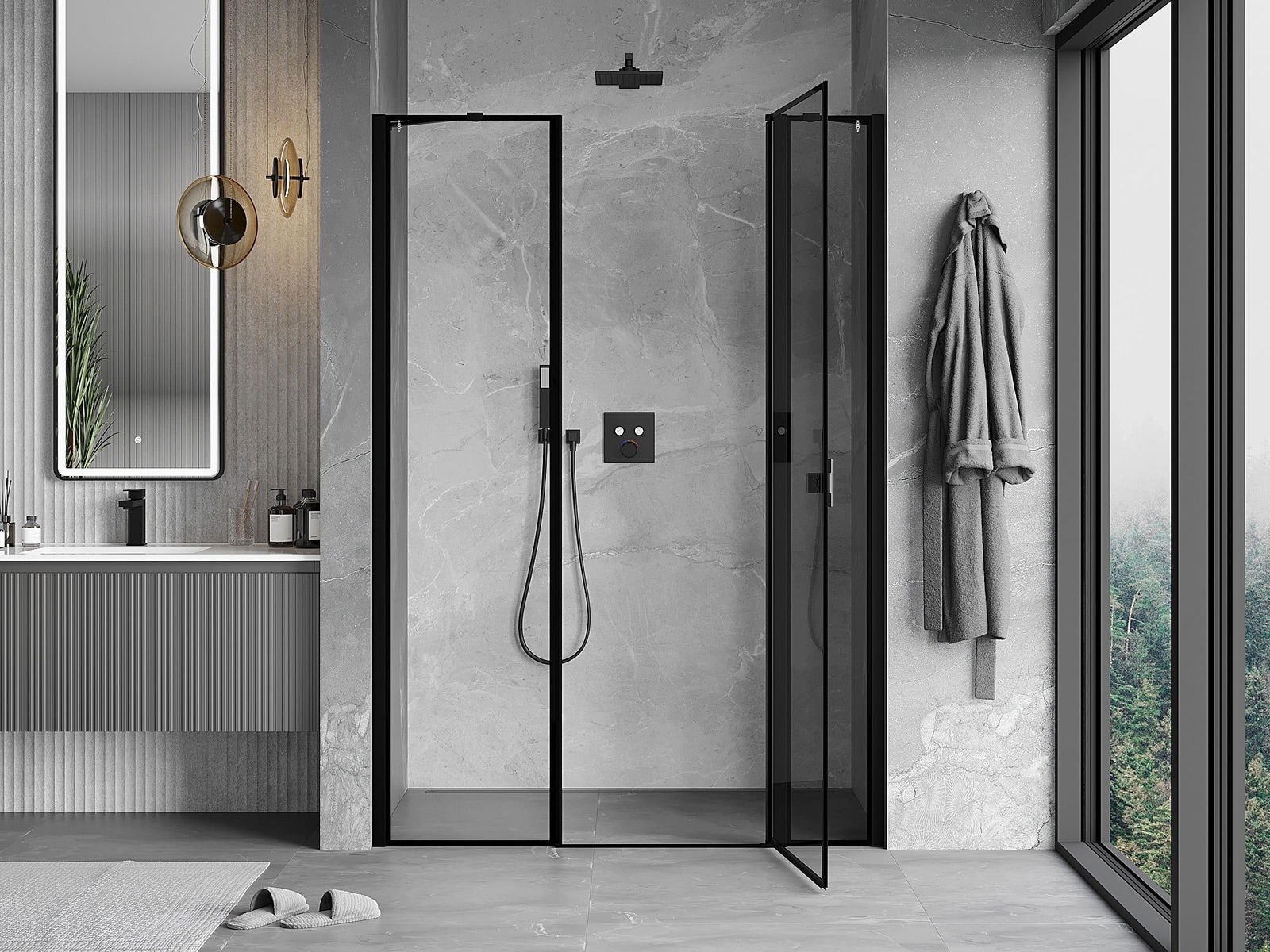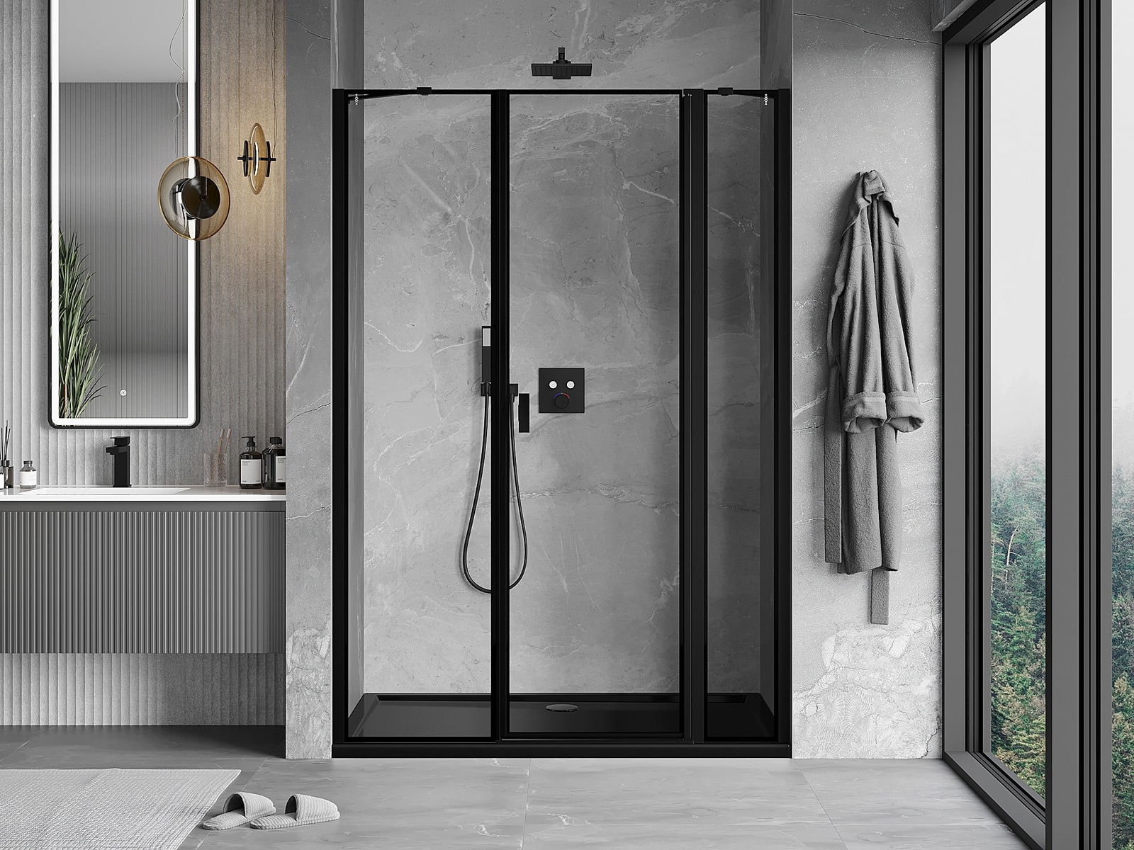 Mexen Mist svängbara duschdörrar höger 150 cm, svart ram, svart - 8A4-150-001-70-70-P