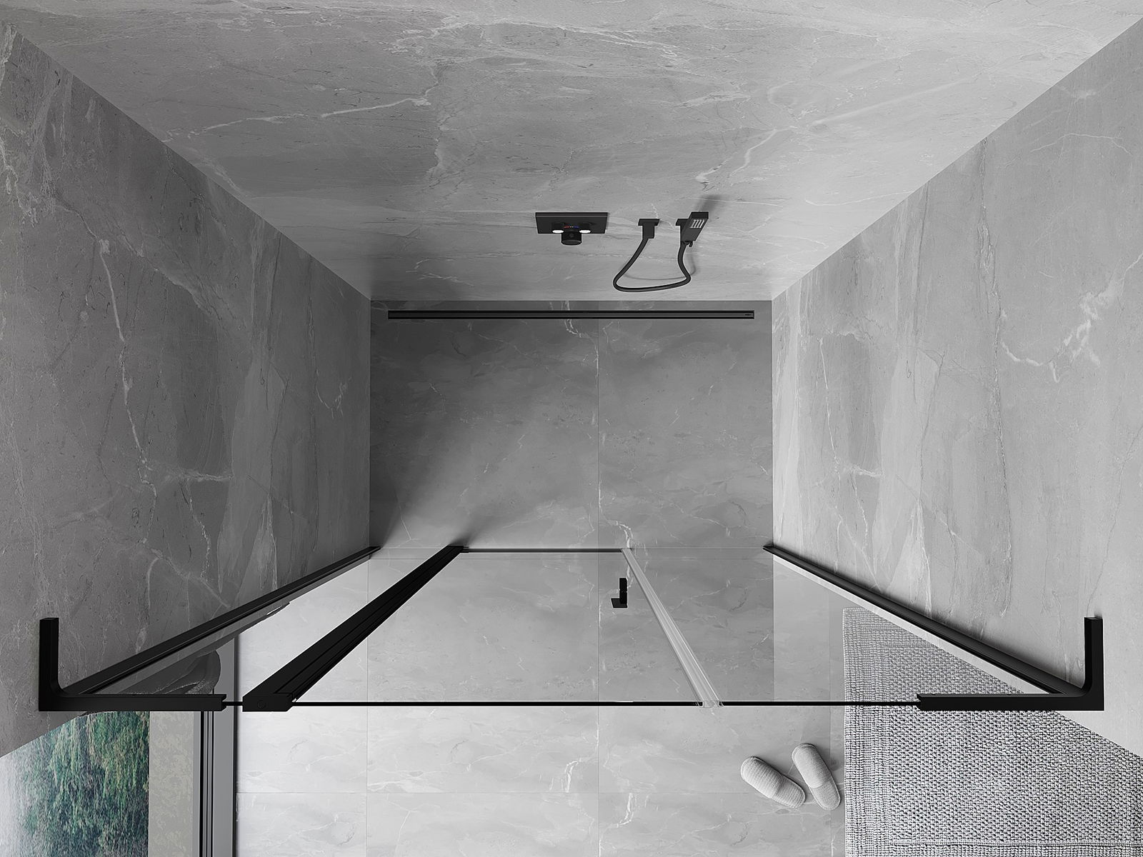 Mexen Mist L svängbar duschdörr 155 cm, transparent, svart - 8A4L-155-001-70-00