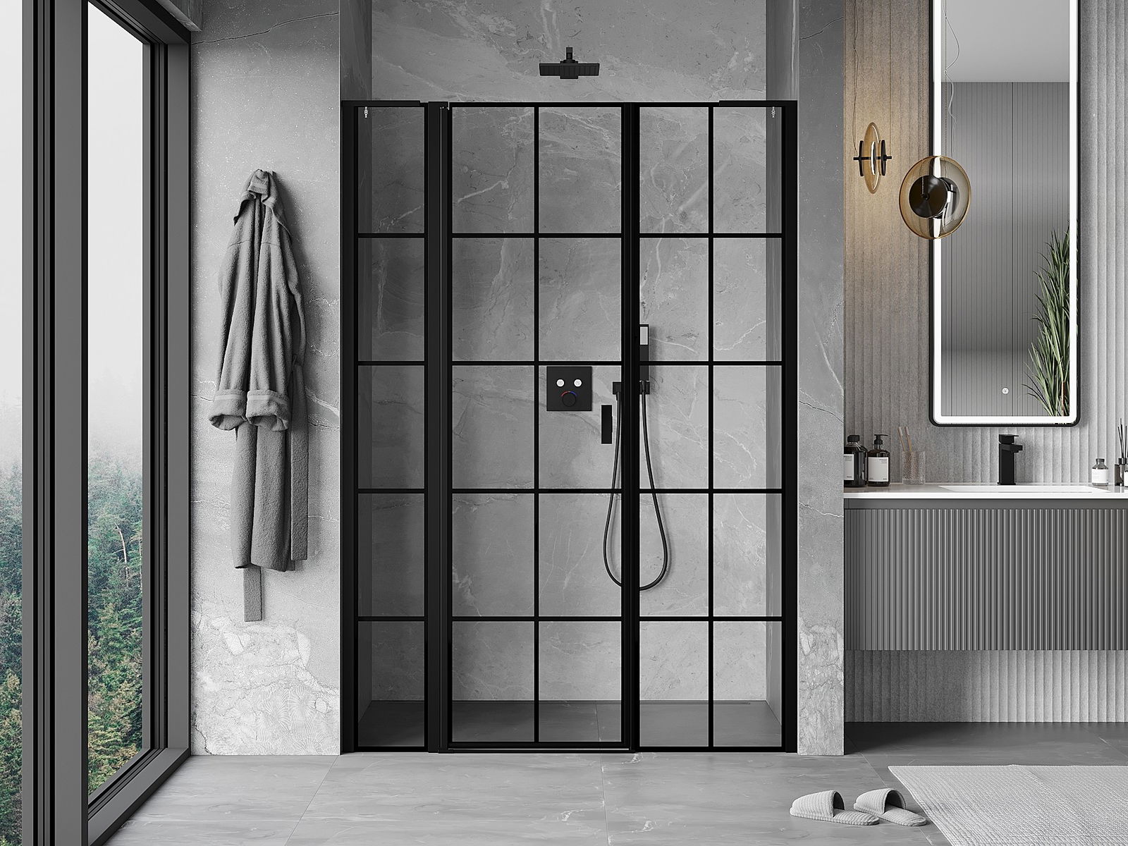 Mexen Mist L vänster svängbar duschdörr 135 cm, svart rutnät, svart - 8A4L-135-001-70-77-L