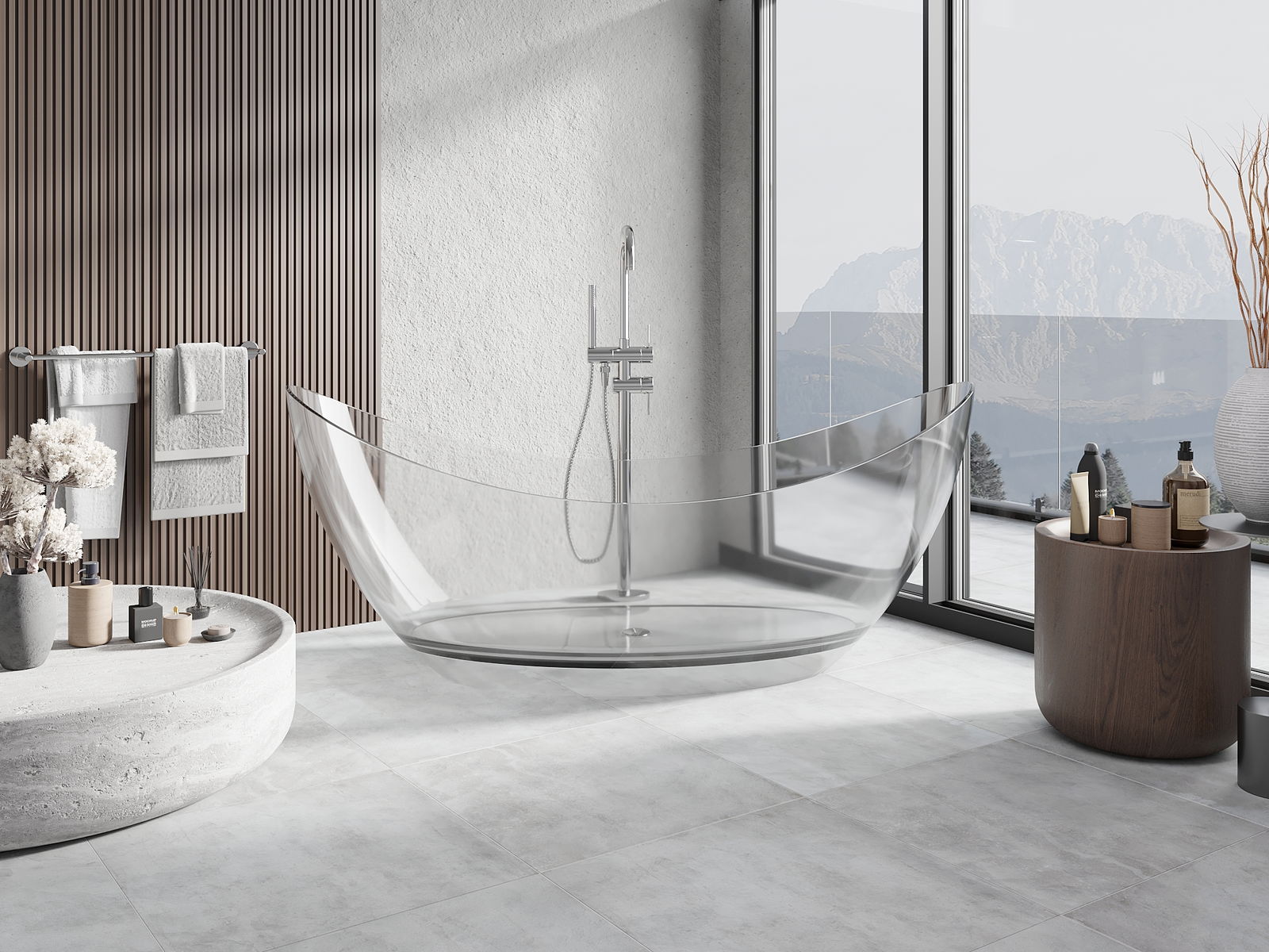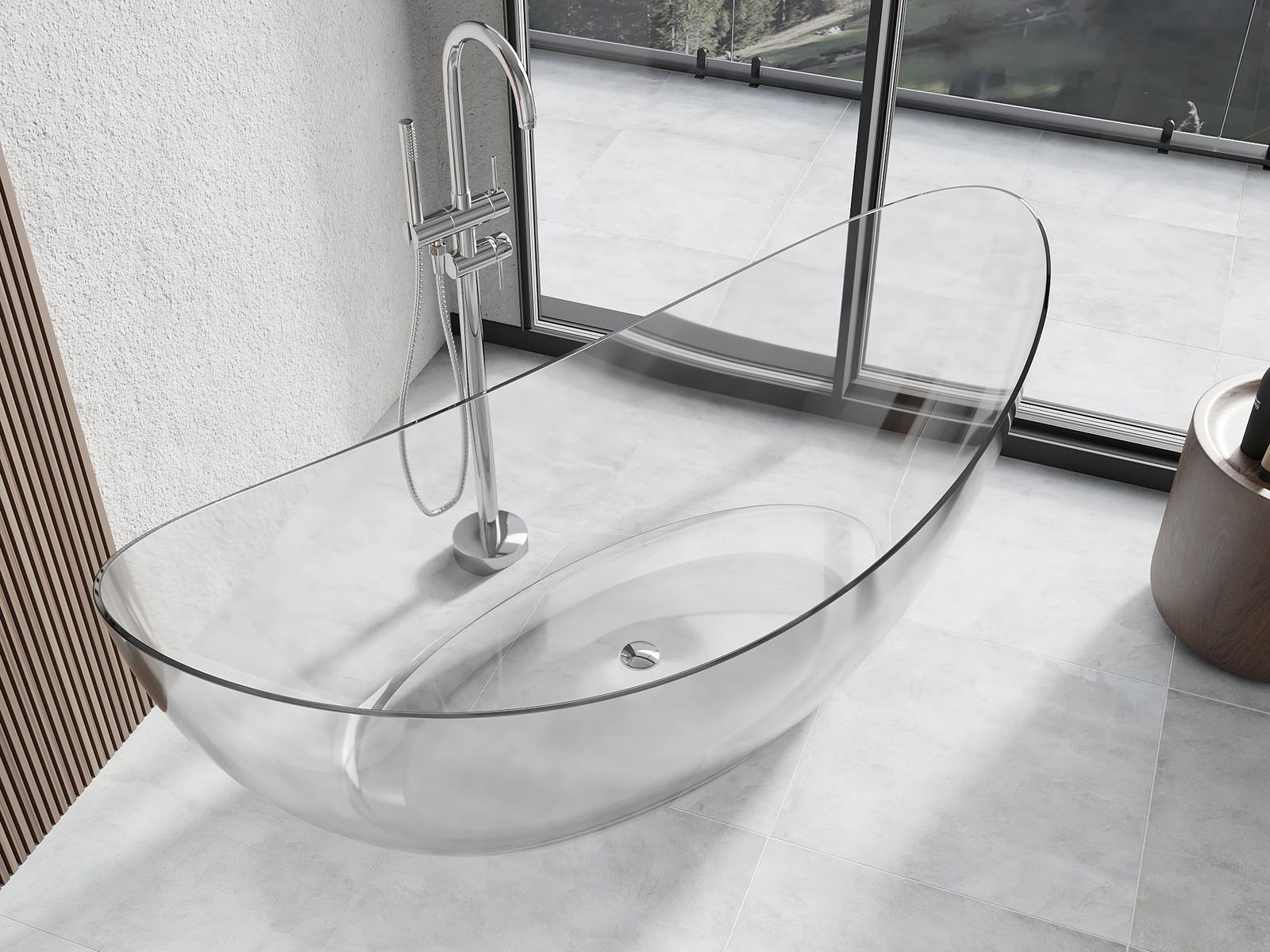 Detta är ett modernt material som kombinerar elegant utseende med hög hållbarhet. Det är resistent mot mekaniska skador, lätt att rengöra och behagligt att ta på. Den transparenta formen och det tunna kantrandet på badkaret ger det lätthet och en unik karaktär, vilket skapar en imponerande accent i badrumsinredningen.