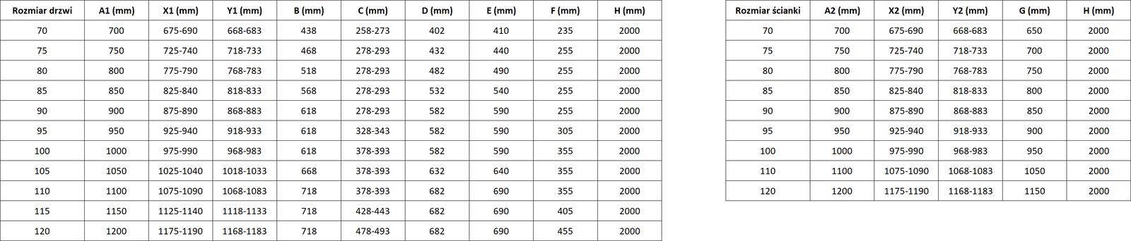 Storlek: 75x110 cm (dörr höger 75 cm, vägg 110 cm)