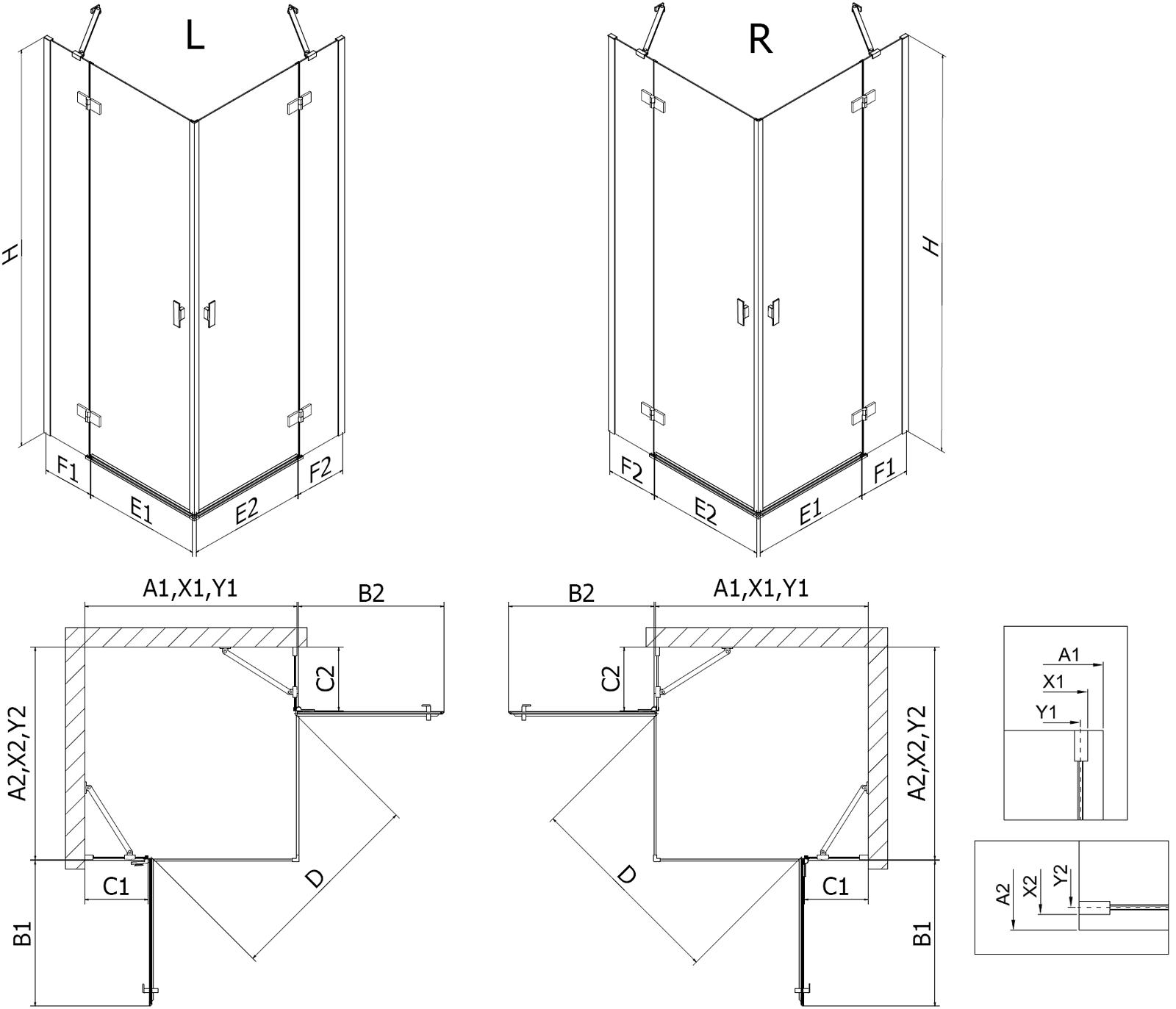 Svangdörrar möjliggör maximal frihet under användning. De har robusta gångjärn tillverkade av hållbart material, som är lätta att hålla rena och ger enkel tillgång till kabinens insida.