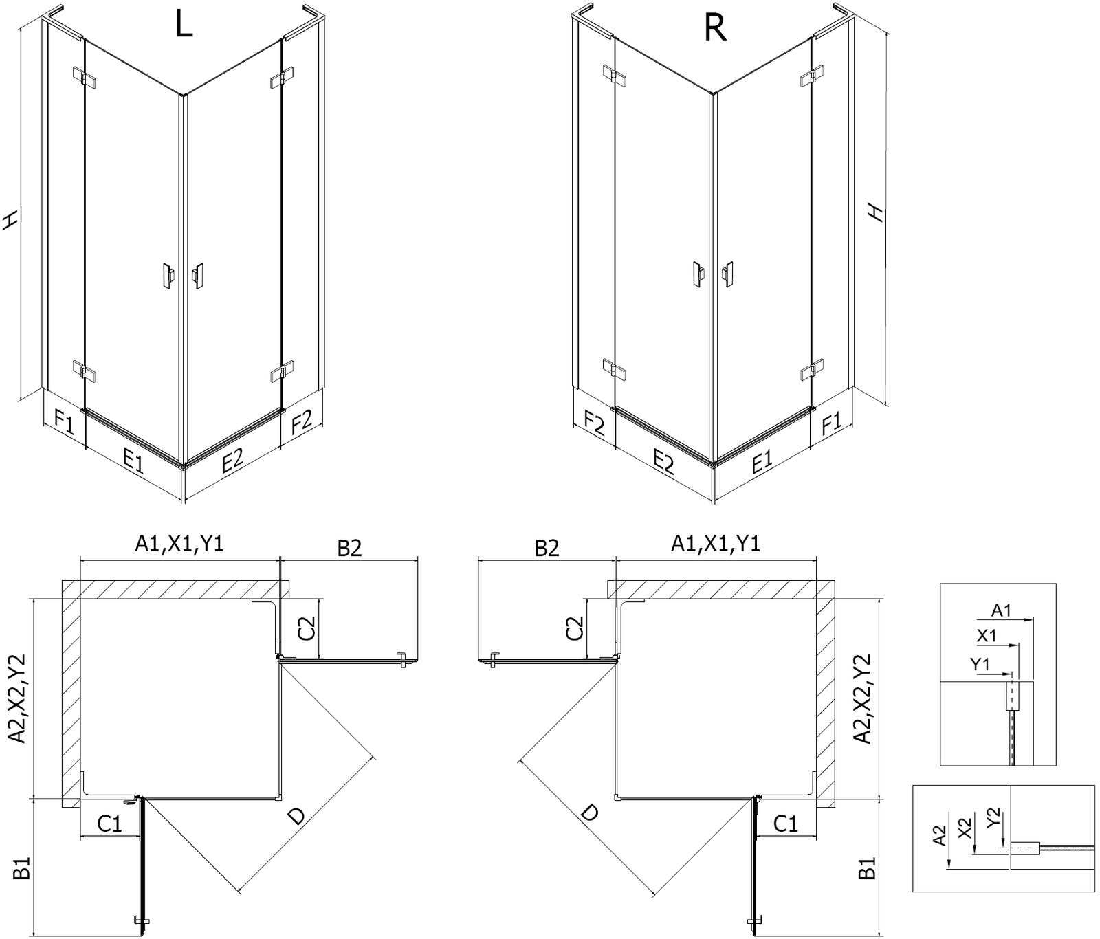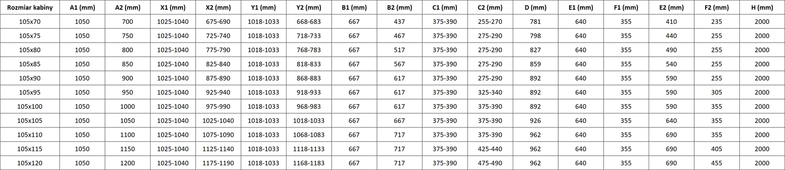 Svangdörrar möjliggör maximal frihet under användning. De har robusta gångjärn tillverkade av hållbart material, som är lätta att hålla rena och ger enkel tillgång till kabinens insida.