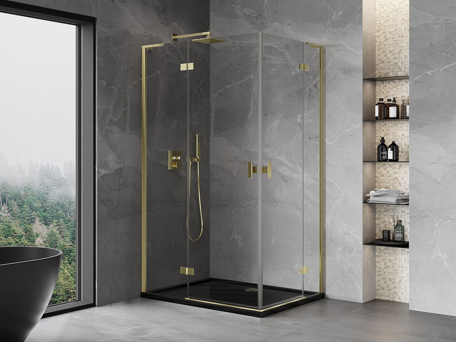 Mexen Mist-H L Dubbelduschkabin svängbar vänster 85 x 80 cm, transparent, guld - 8A5L-085L-080P-50-00