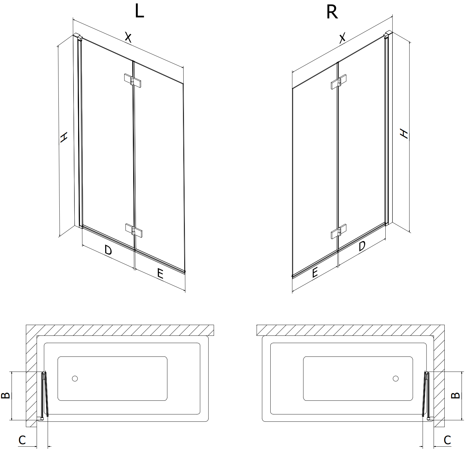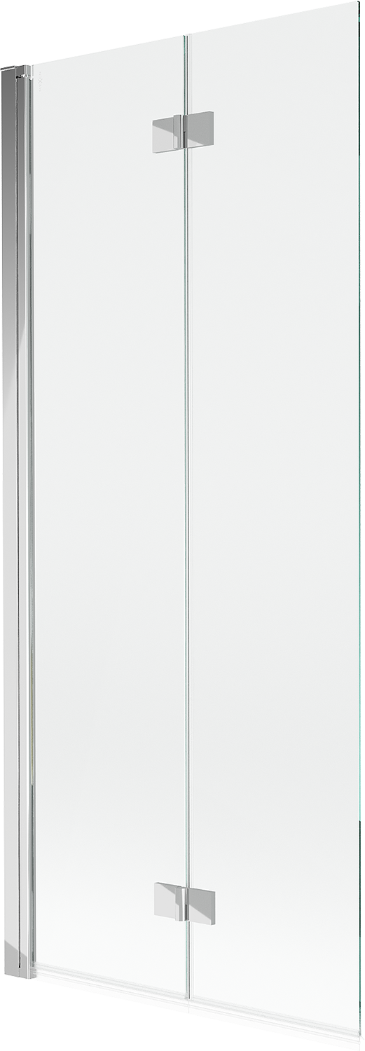 Skärmvägg tillverkad av två vingar med möjlighet att fällas ihop. En sådan lösning sparar mer utrymme i badrummet och möjliggör fri användning av det återstående utrymmet när vi inte använder badzonen.