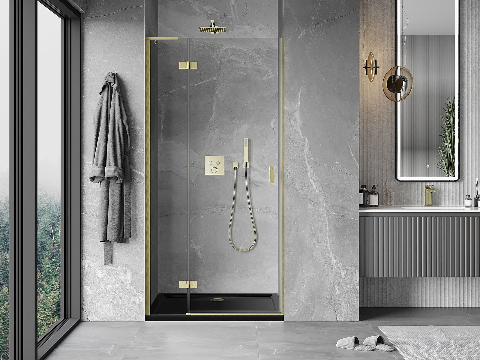 Det praktiska och bekväma handtaget är tillverkat av hållbar och tålig metall. Den moderna formen i kombination med en finish som matchar profilernas färg ger helheten ett modernt och stilfullt utseende, samtidigt som det framhäver estetiken i varje badrum.