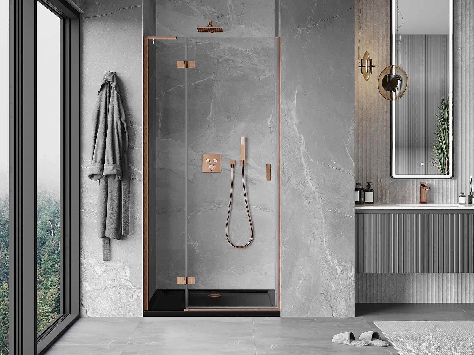 Mexen Mist-H L vänster gångjärnsdörr 95 cm, transparent, borstad koppar - 8A5L-095-000-65-00-L