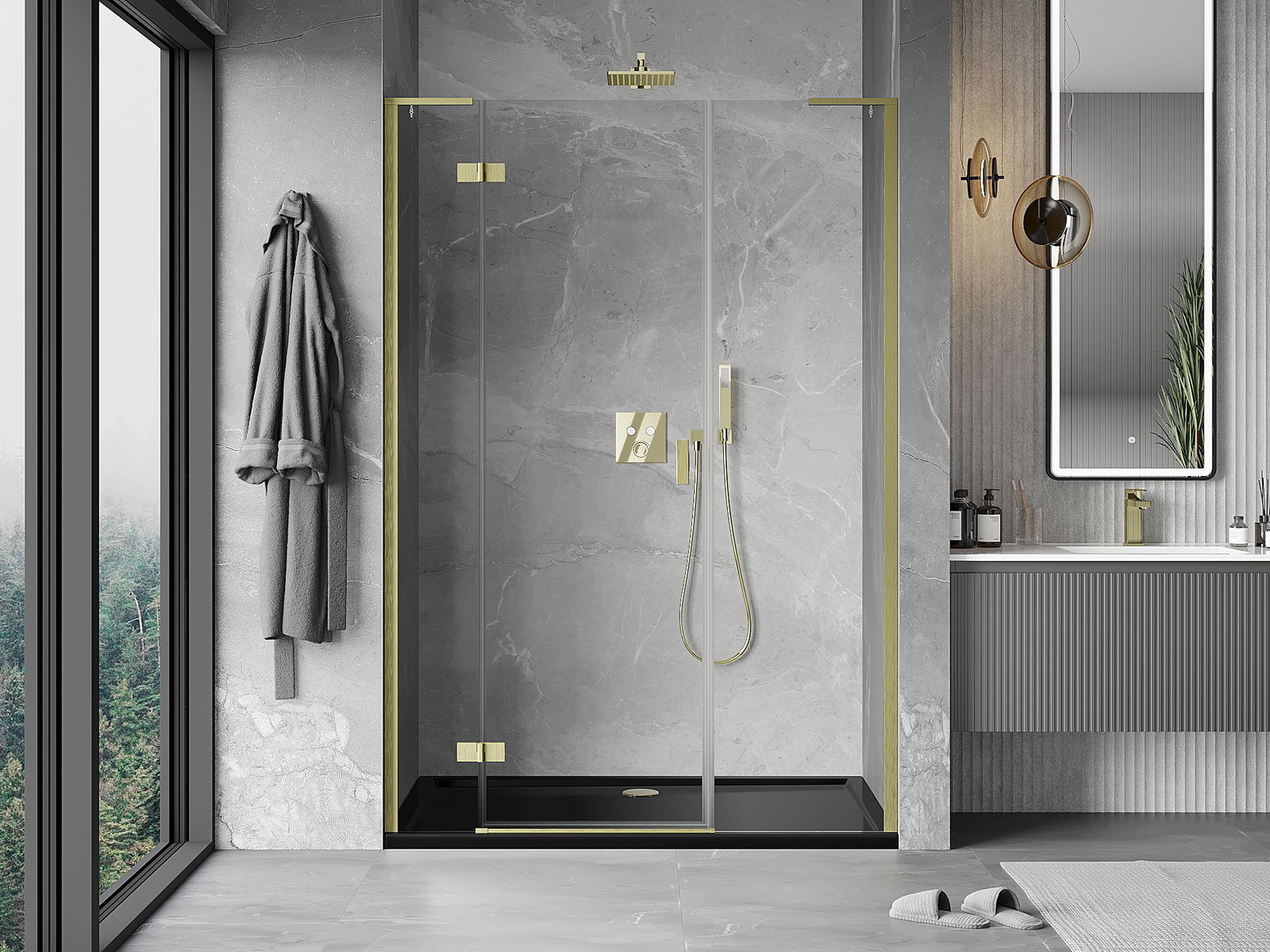 Det praktiska och bekväma handtaget är tillverkat av hållbar och tålig metall. Den moderna formen i kombination med en finish som matchar profilernas färg ger helheten ett modernt och stilfullt utseende, samtidigt som det framhäver estetiken i varje badrum.