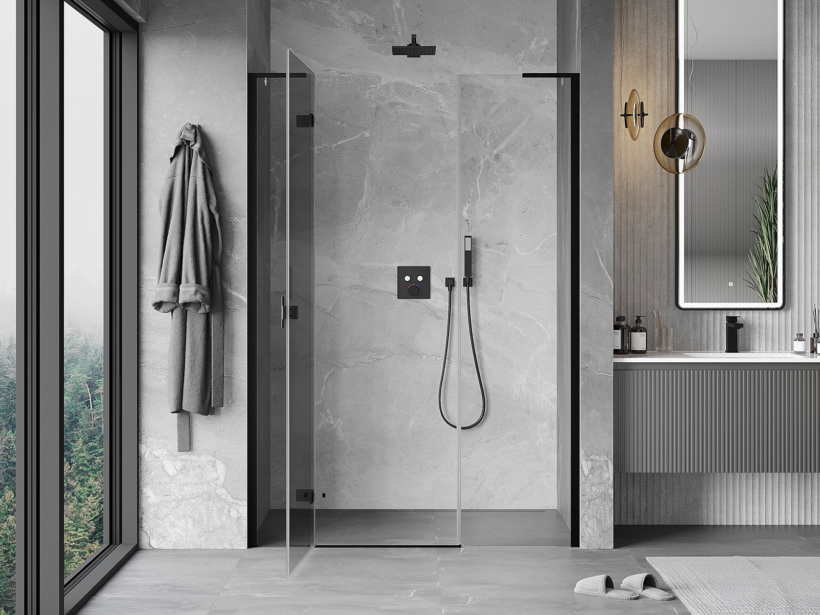 Svangdörrar möjliggör maximal frihet under användning. De har robusta gångjärn tillverkade av hållbart material, som är lätta att hålla rena och ger enkel tillgång till kabinens insida.