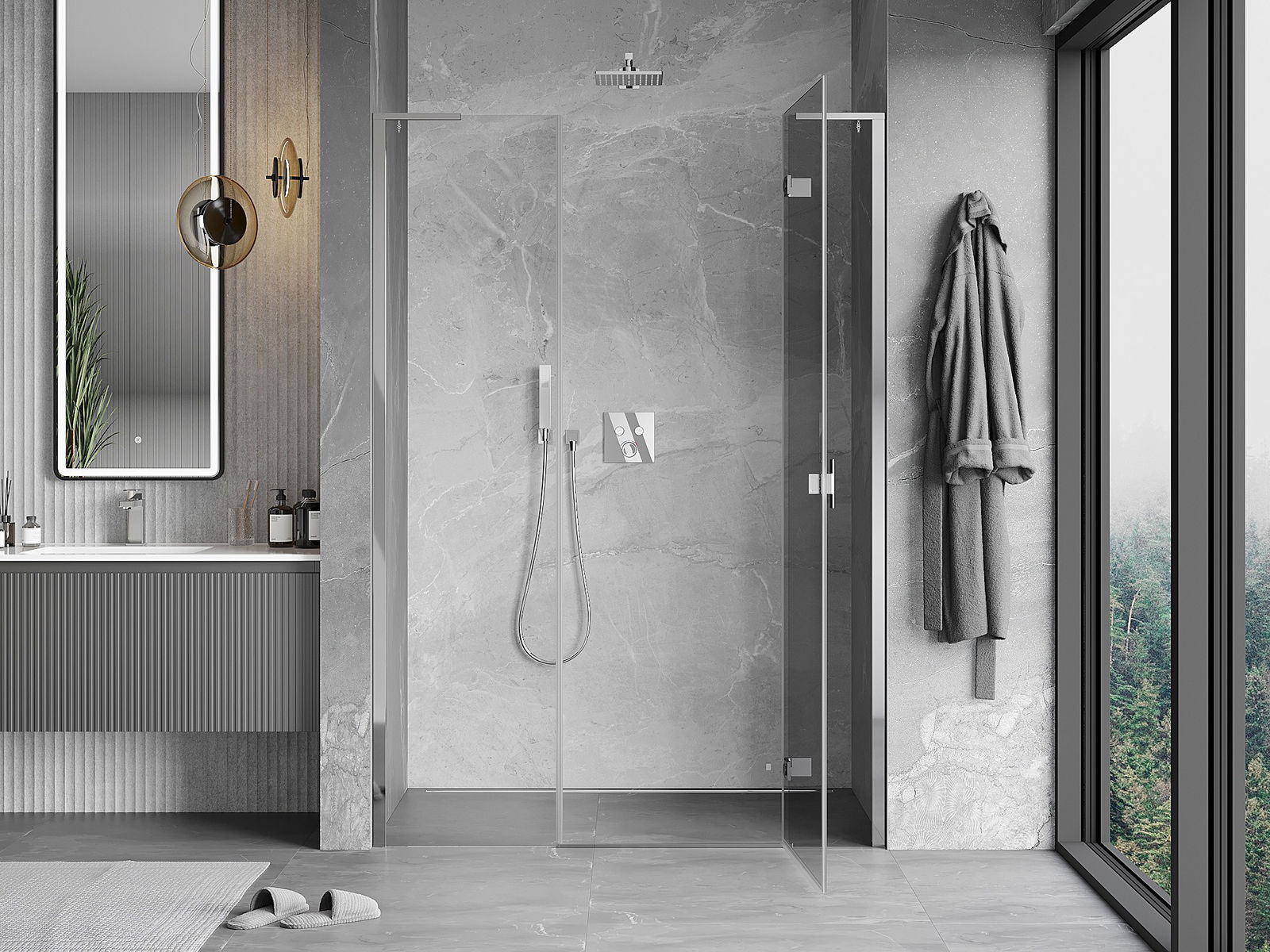 Svangdörrar möjliggör maximal frihet under användning. De har robusta gångjärn tillverkade av hållbart material, som är lätta att hålla rena och ger enkel tillgång till kabinens insida.