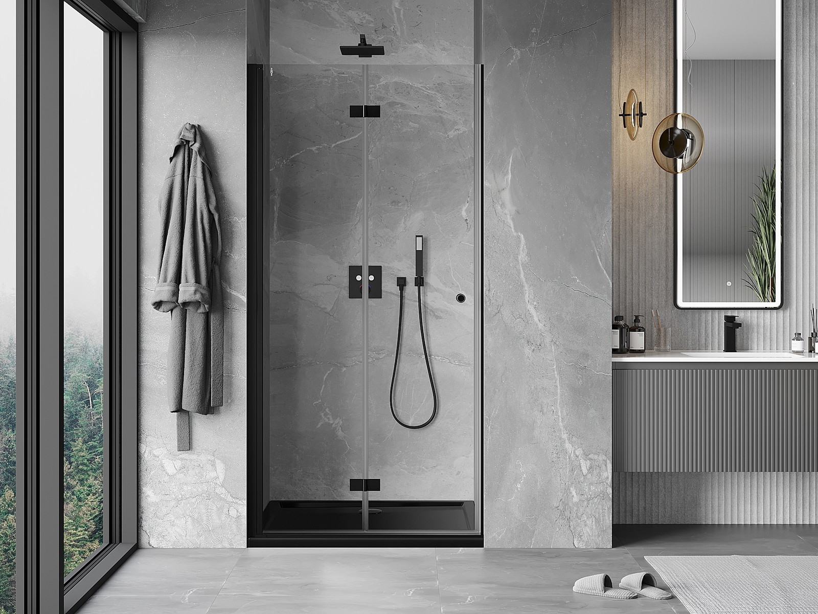 Mexen Mist-F vikbara duschdörrar vänster 115 cm, transparent, svart - 8A6-115-000-70-00-L