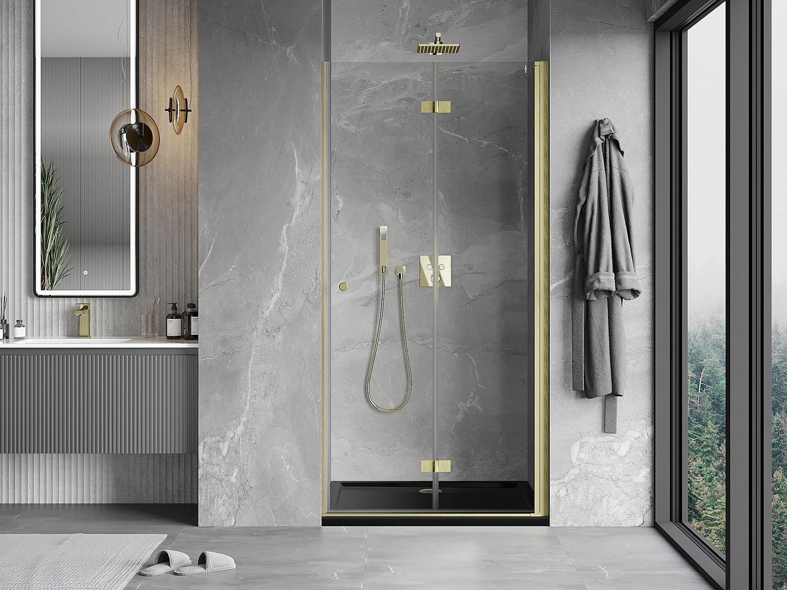 Mexen Mist-F fällbara duschdörrar höger 75 cm, transparent, guld borstad - 8A6-075-000-55-00-P