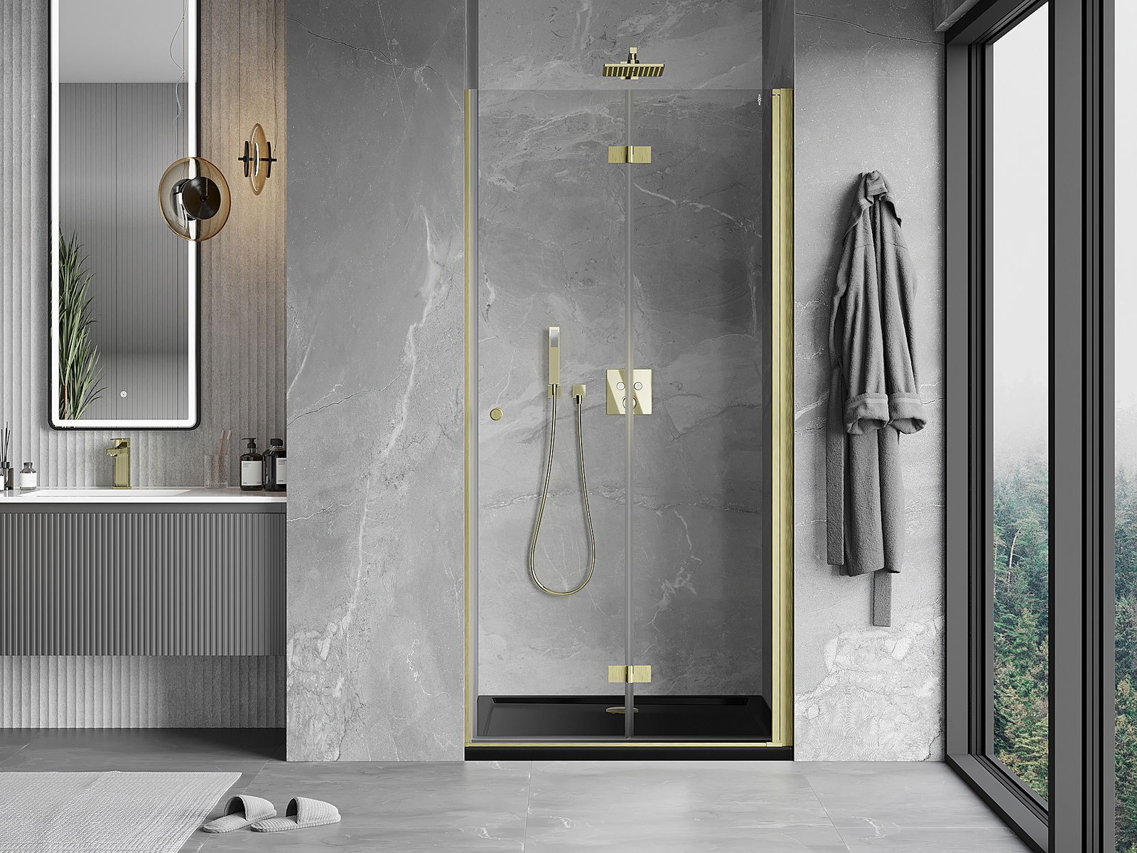 Mexen Mist-F vikbara duschdörrar höger 100 cm, transparent, borstad guld - 8A6-100-000-55-00-P