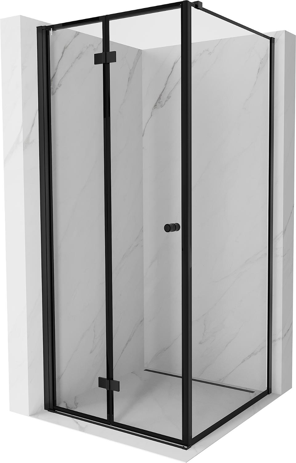 Mexen Mist-F vikbar duschkabin vänster 100 x 100 cm, svart ram, svart - 8A6T-100-100-70-70-L