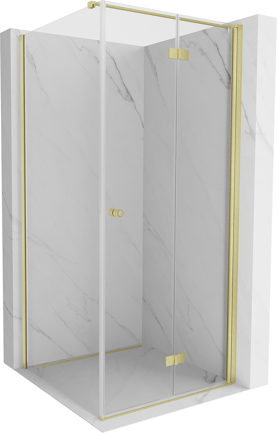 Mexen Mist-F fällbar duschkabin höger 70 x 70 cm, transparent, borstad guld - 8A6T-070-070-55-00-P