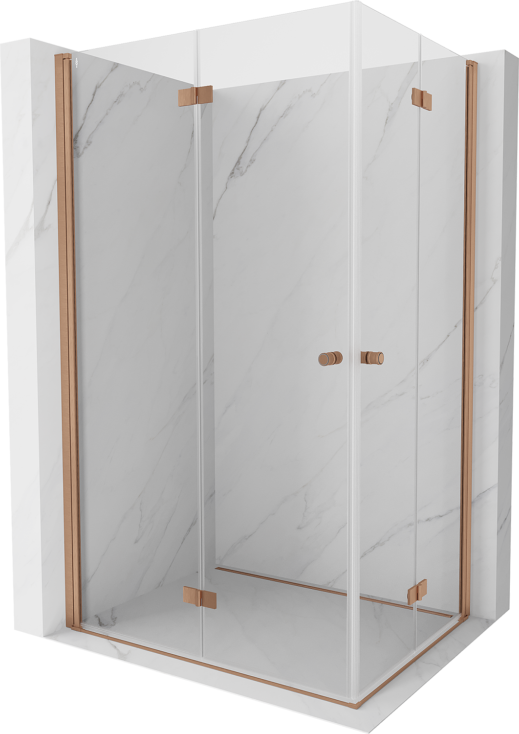 Mexen Mist-F Duo vikbar duschkabin vänster 90 x 70 cm, transparent, borstad koppar - 8A6-090L-070P-65-00