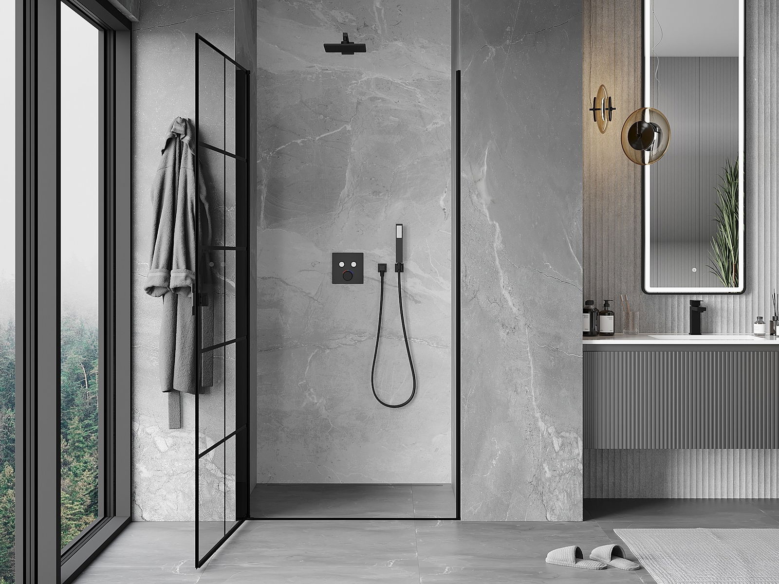 Det praktiska och bekväma handtaget är tillverkat av hållbar och tålig metall. Den moderna formen i kombination med en finish som matchar profilernas färg ger helheten ett modernt och stilfullt utseende, samtidigt som det framhäver estetiken i varje badrum.