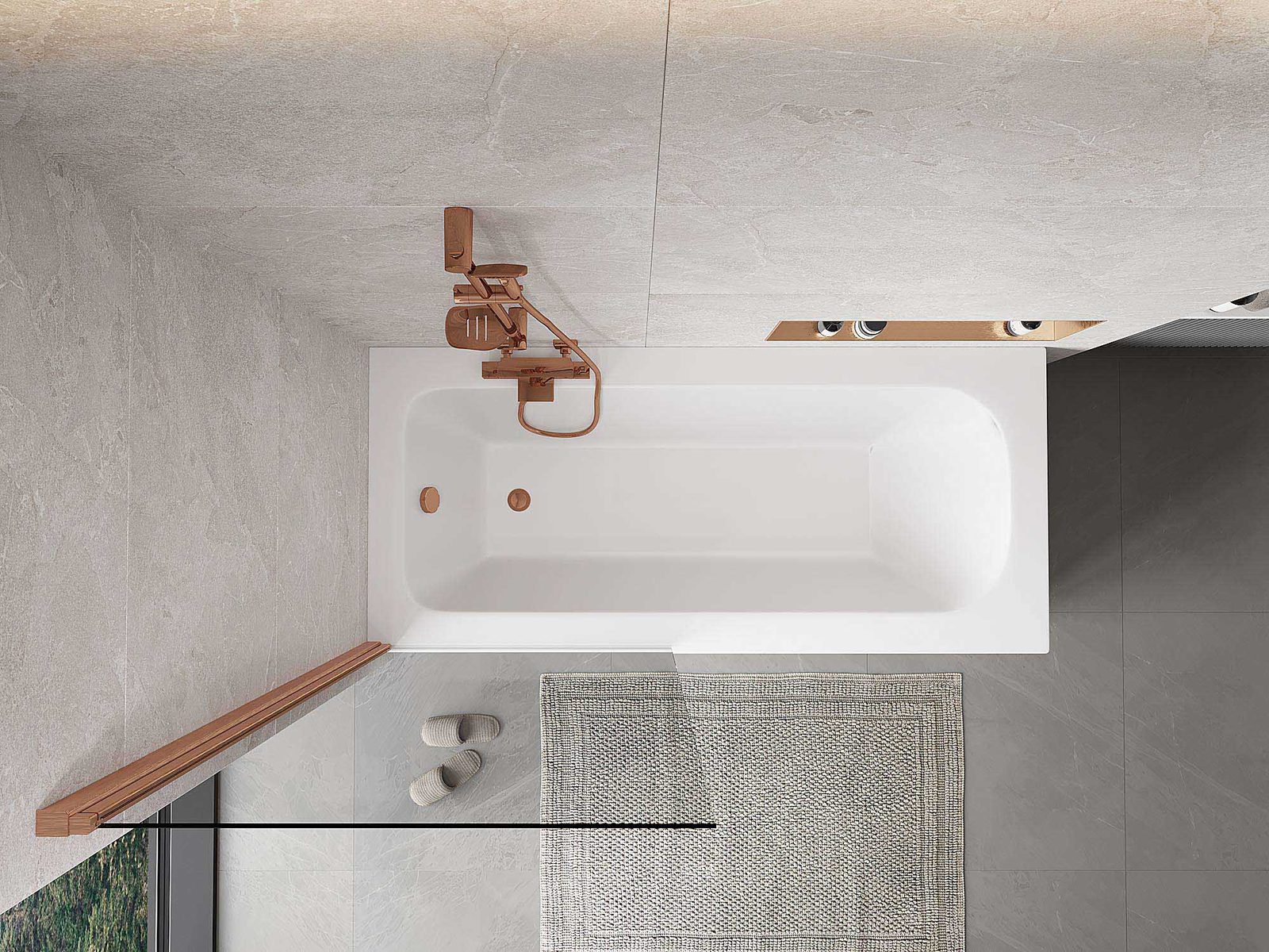 Skärmen har en rörlig vinge som kan fällas ihop. Denna lösning sparar mer utrymme i badrummet och möjliggör fri användning av det återstående utrymmet när vi inte använder badzonen.