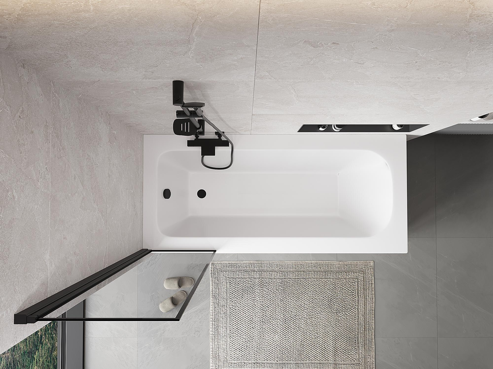 Skärmvägg tillverkad av två vingar med möjlighet att fällas ihop. En sådan lösning sparar mer utrymme i badrummet och möjliggör fri användning av det återstående utrymmet när vi inte använder badzonen.