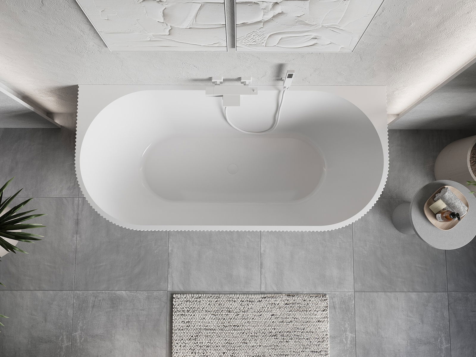 Detta är ett modernt material som kombinerar elegant utseende med hög hållbarhet. Det är resistent mot mekaniska skador, lätt att rengöra och behagligt att ta på. Den transparenta formen och det tunna kantrandet på badkaret ger det lätthet och en unik karaktär, vilket skapar en imponerande accent i badrumsinredningen.