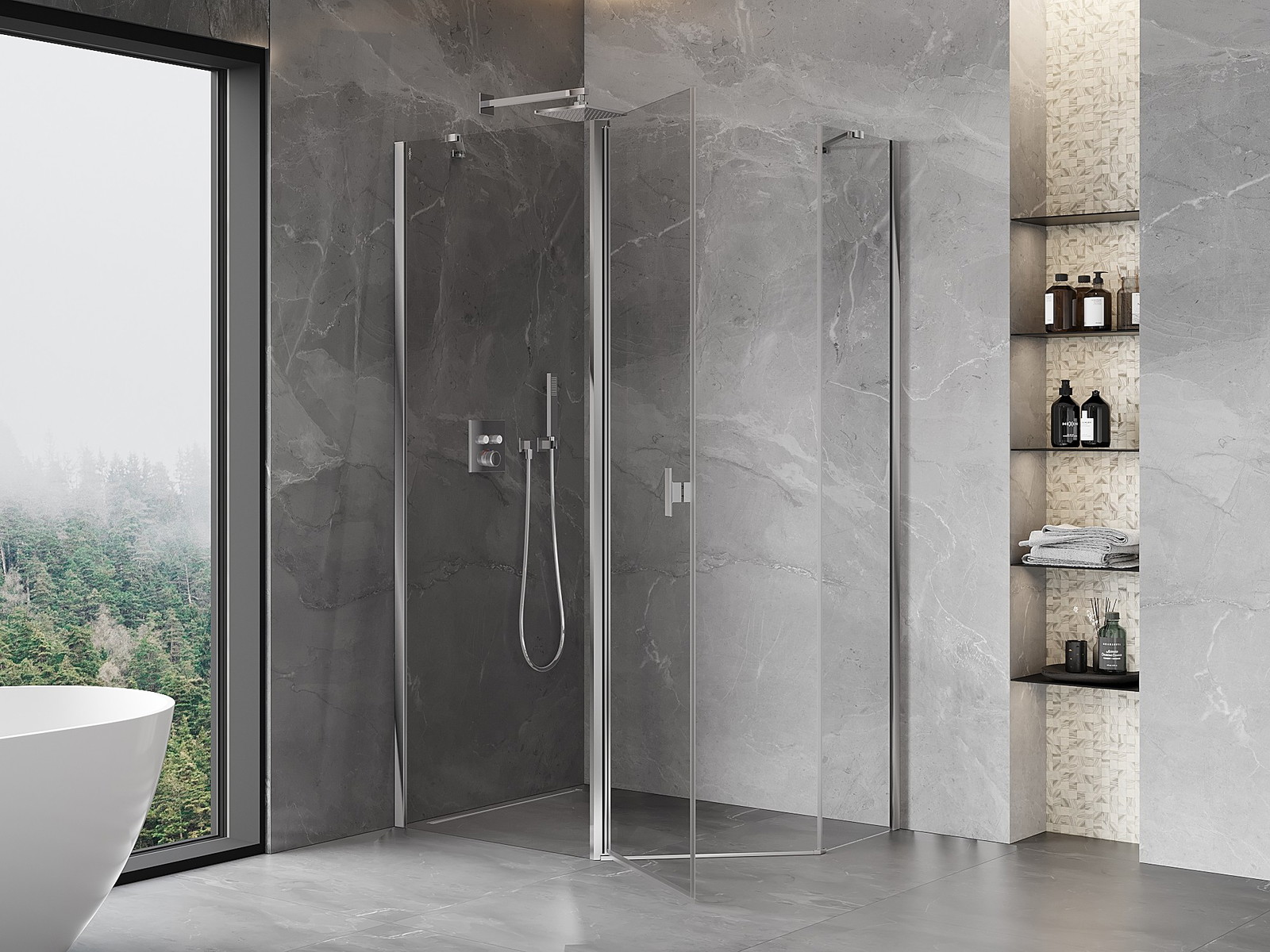 Mexen Mist Asymmetrisk femkantig duschkabin med gångjärnsdörr 100 x 90 cm, transparent, krom - 8A8-100-090-01-00