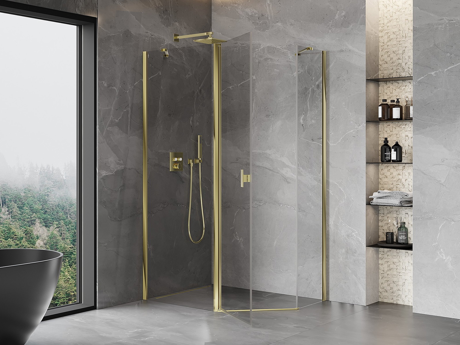 Mexen Mist asymmetrisk femkantig duschkabin 100 x 90 cm, transparent, guld - 8A8-100-090-50-00