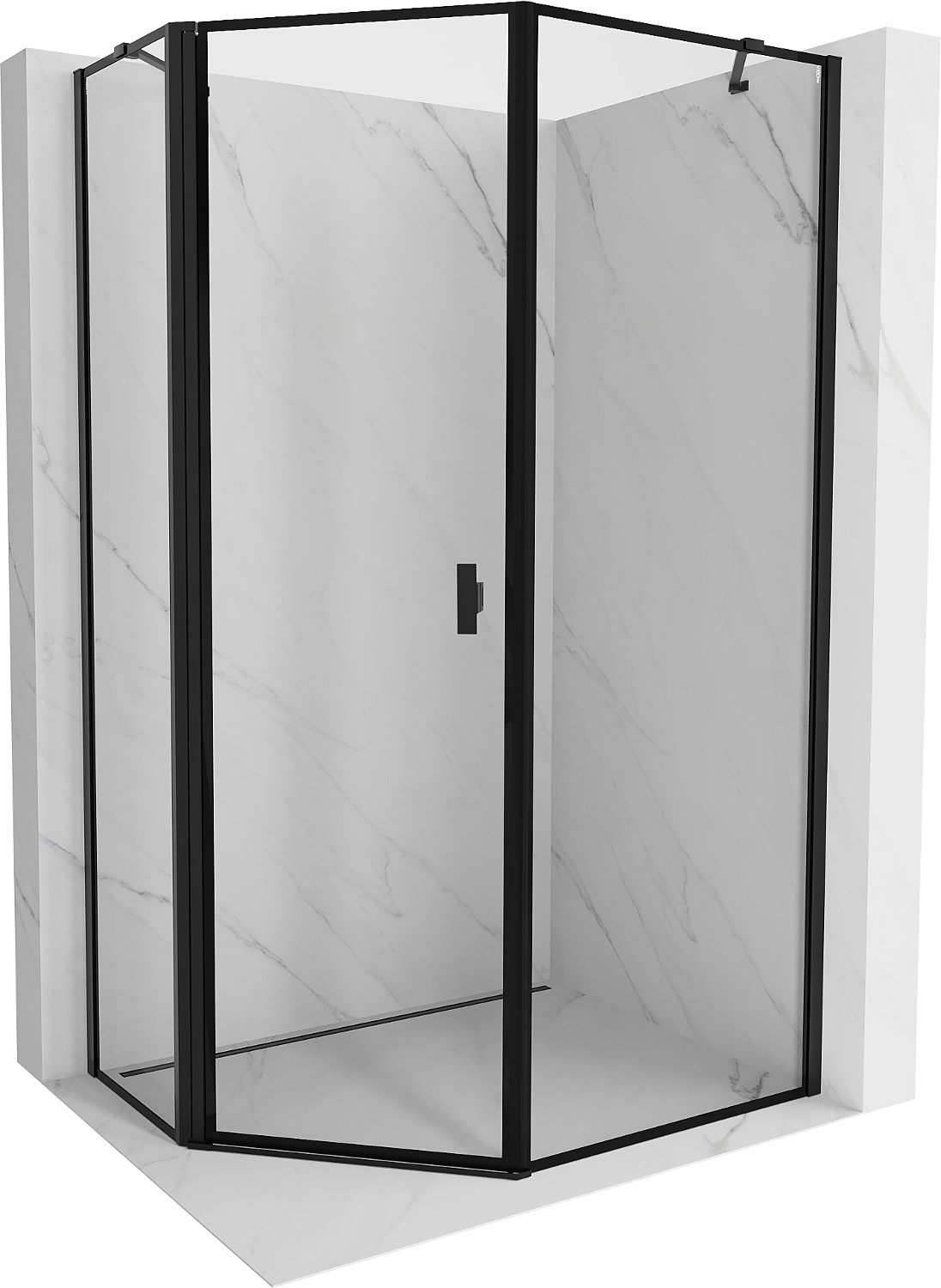 Mexen Mist asymmetrisk pentagonal duschkabin med svängbar vänsterdörr 80 x 90 cm, svart ram, svart - 8A8-080-090-70-70-L