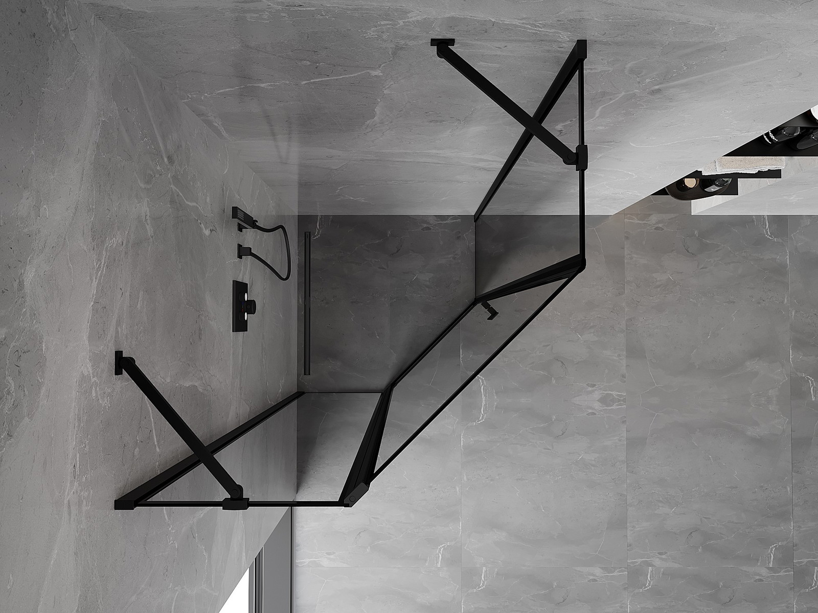 Mexen Mist femkantig duschkabin med svängdörr vänster 90 x 90 cm, svart ram, svart - 8A8-090-090-70-70-L