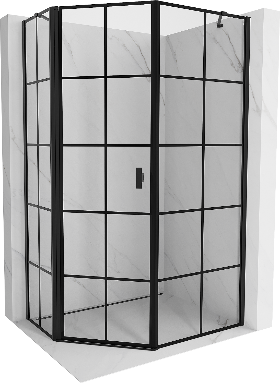 Mexen Mist asymmetrisk pentagonal duschkabin med svängdörr vänster 80 x 90 cm, svart rutnät, svart - 8A8-080-090-70-77-L