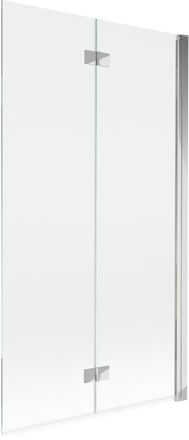 Skärmvägg tillverkad av två vingar med möjlighet att fällas ihop. En sådan lösning sparar mer utrymme i badrummet och möjliggör fri användning av det återstående utrymmet när vi inte använder badzonen.