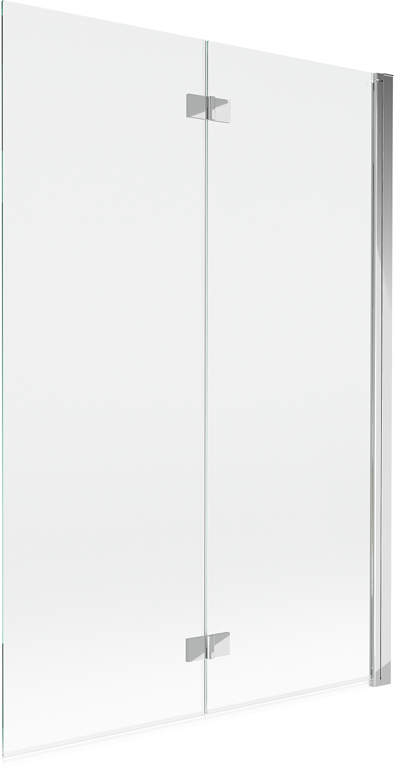 Skärmvägg tillverkad av två vingar med möjlighet att fällas ihop. En sådan lösning sparar mer utrymme i badrummet och möjliggör fri användning av det återstående utrymmet när vi inte använder badzonen.