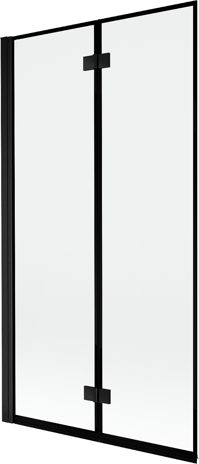 Skärmvägg tillverkad av två vingar med möjlighet att fällas ihop. En sådan lösning sparar mer utrymme i badrummet och möjliggör fri användning av det återstående utrymmet när vi inte använder badzonen.