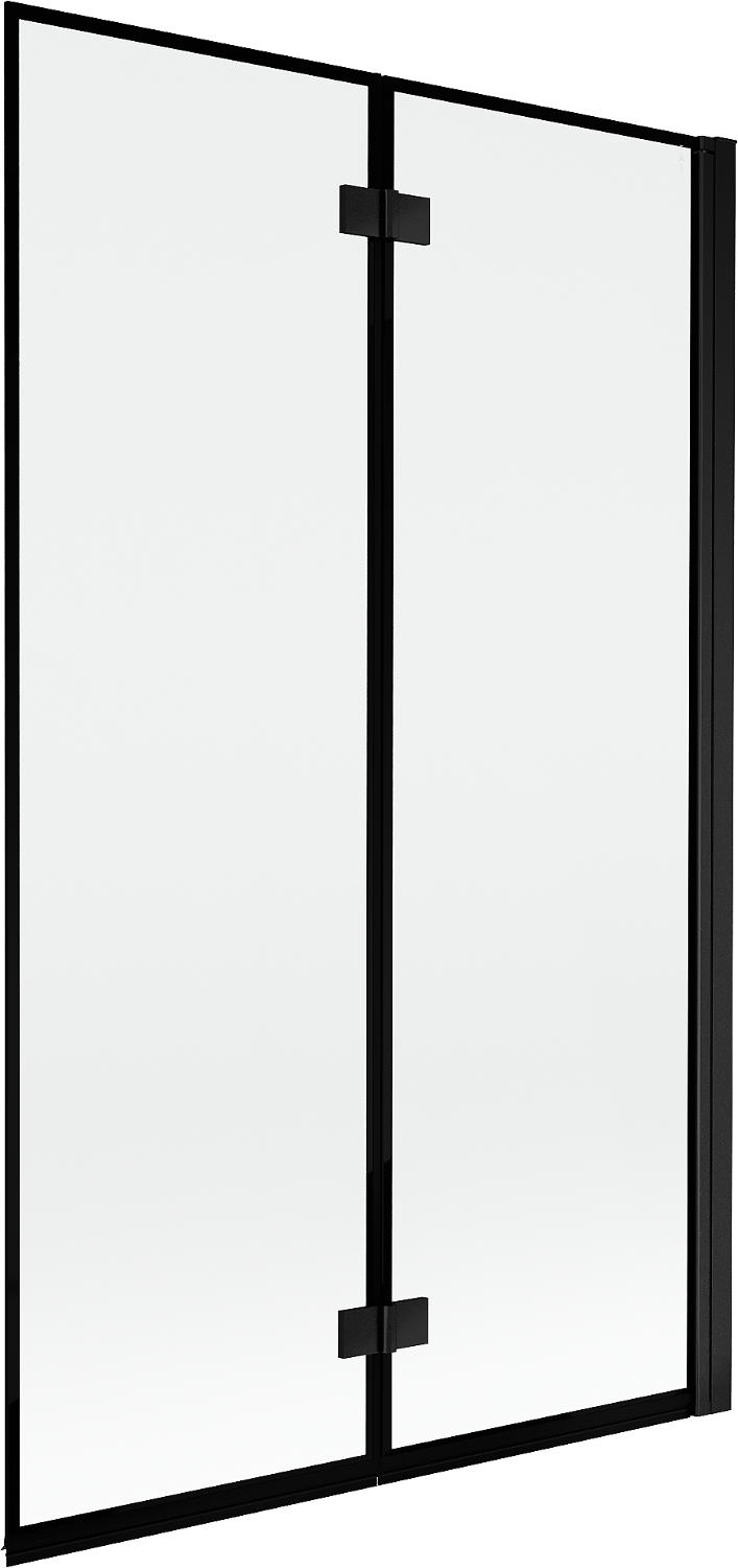Skärmvägg tillverkad av två vingar med möjlighet att fällas ihop. En sådan lösning sparar mer utrymme i badrummet och möjliggör fri användning av det återstående utrymmet när vi inte använder badzonen.