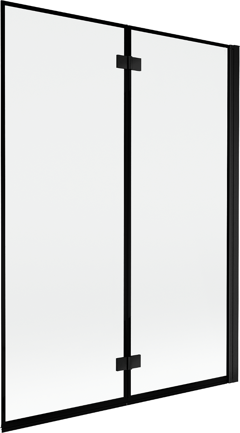 Skärmvägg tillverkad av två vingar med möjlighet att fällas ihop. En sådan lösning sparar mer utrymme i badrummet och möjliggör fri användning av det återstående utrymmet när vi inte använder badzonen.
