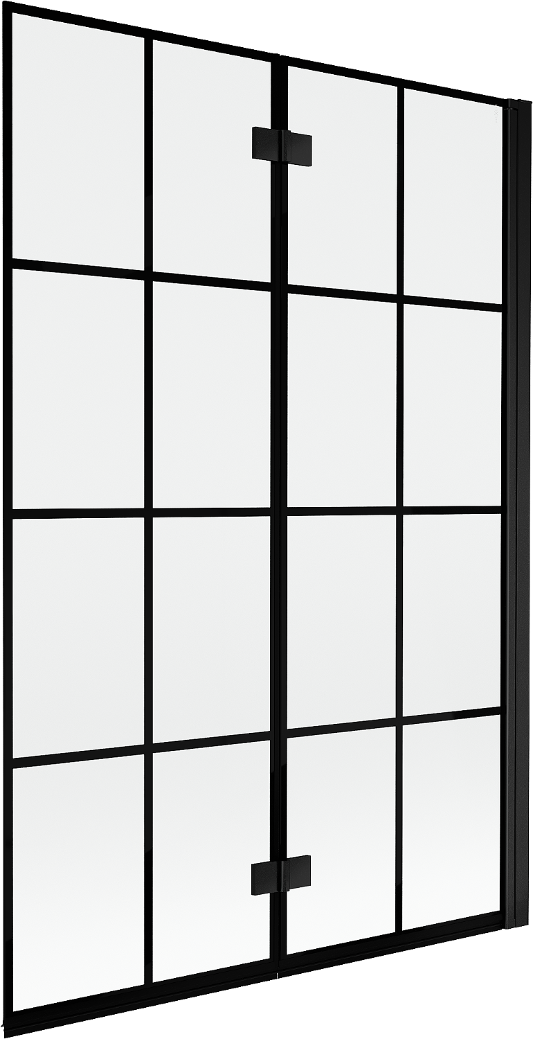Skärmvägg tillverkad av två vingar med möjlighet att fällas ihop. En sådan lösning sparar mer utrymme i badrummet och möjliggör fri användning av det återstående utrymmet när vi inte använder badzonen.