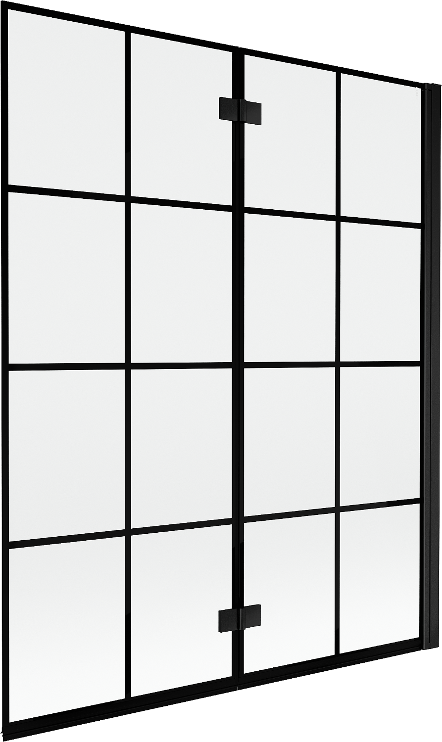 Skärmvägg tillverkad av två vingar med möjlighet att fällas ihop. En sådan lösning sparar mer utrymme i badrummet och möjliggör fri användning av det återstående utrymmet när vi inte använder badzonen.