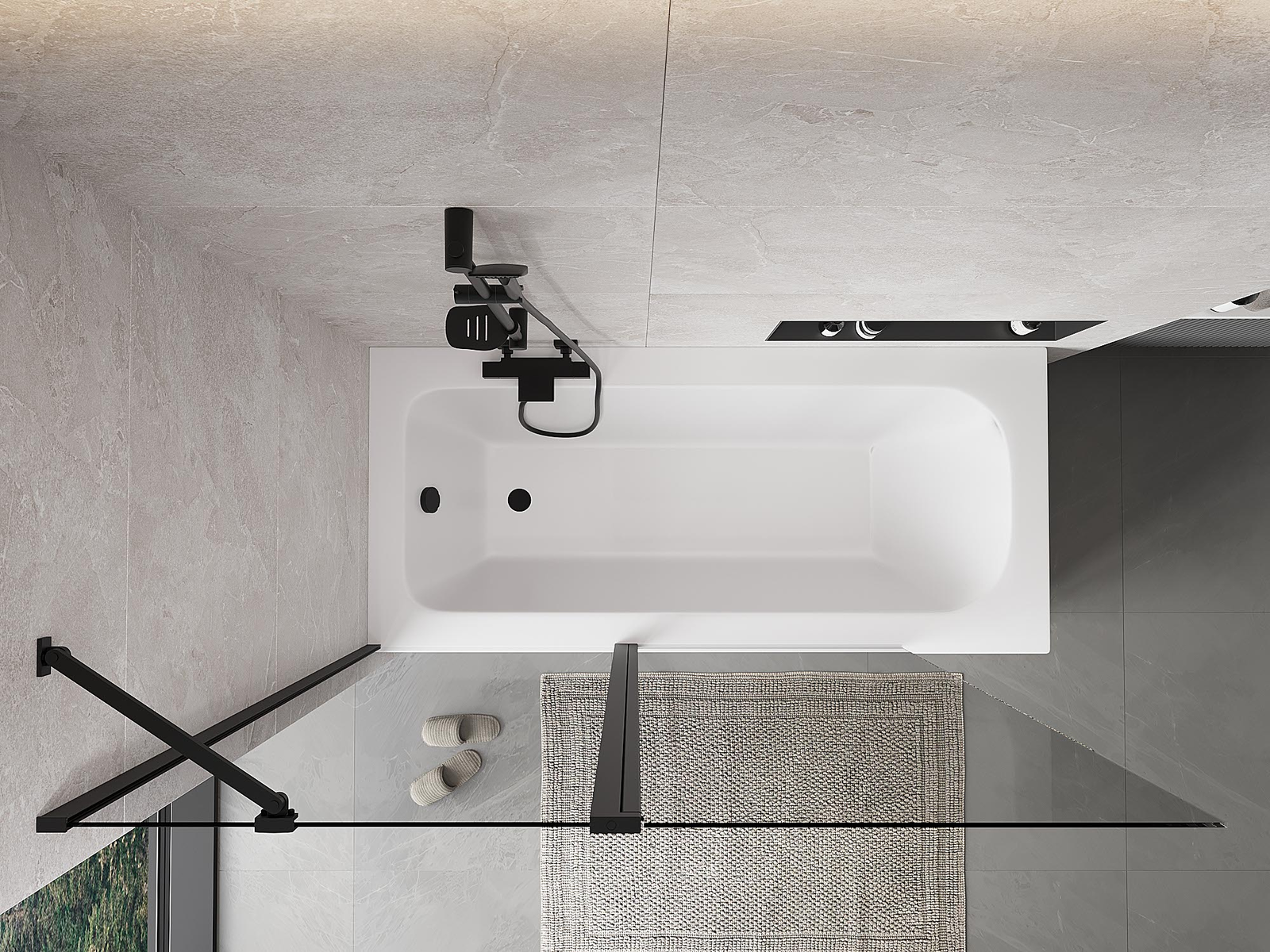 Skärmvägg tillverkad av två vingar med möjlighet att fällas ihop. En sådan lösning sparar mer utrymme i badrummet och möjliggör fri användning av det återstående utrymmet när vi inte använder badzonen.