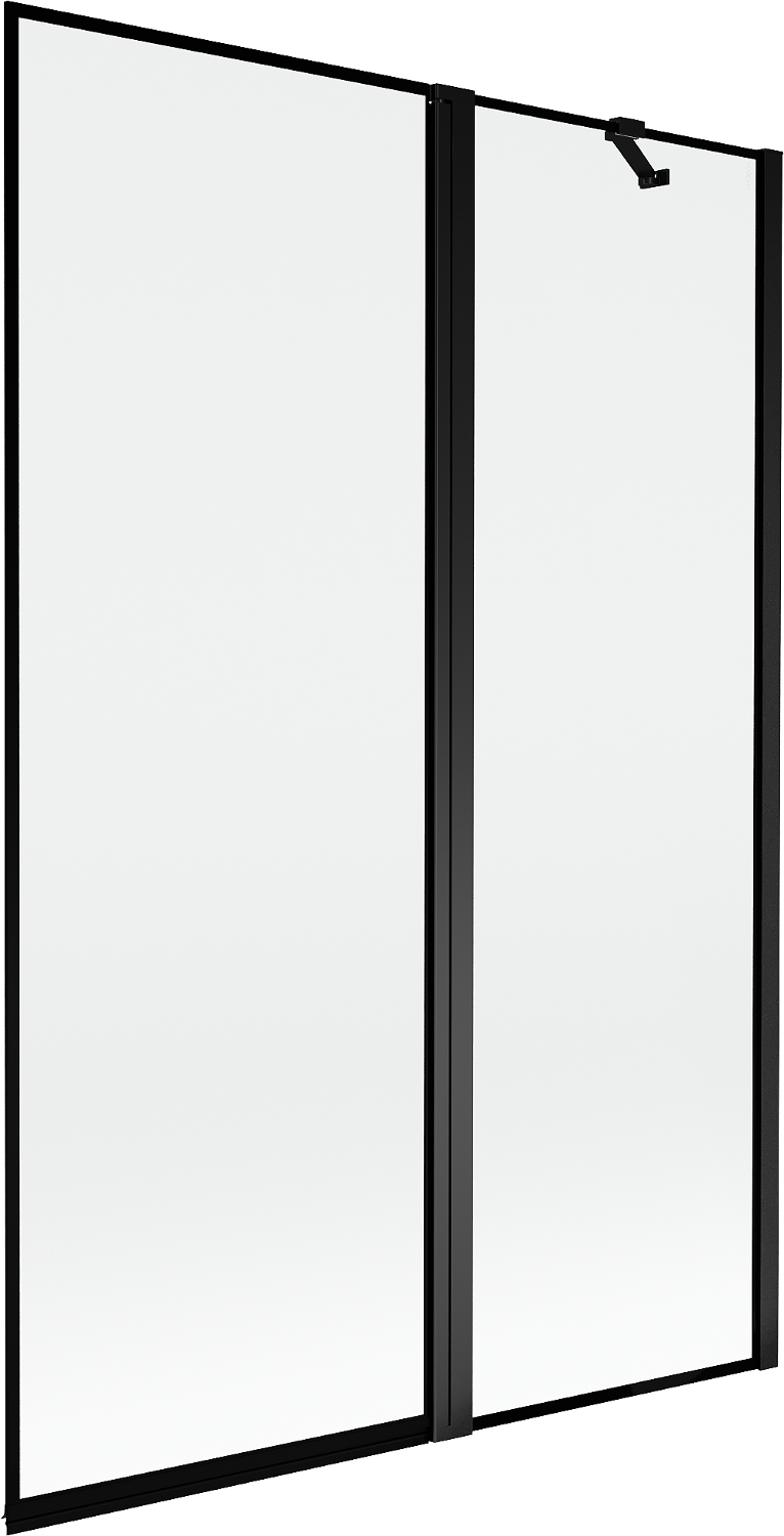 Skärmvägg tillverkad av två vingar med möjlighet att fällas ihop. En sådan lösning sparar mer utrymme i badrummet och möjliggör fri användning av det återstående utrymmet när vi inte använder badzonen.