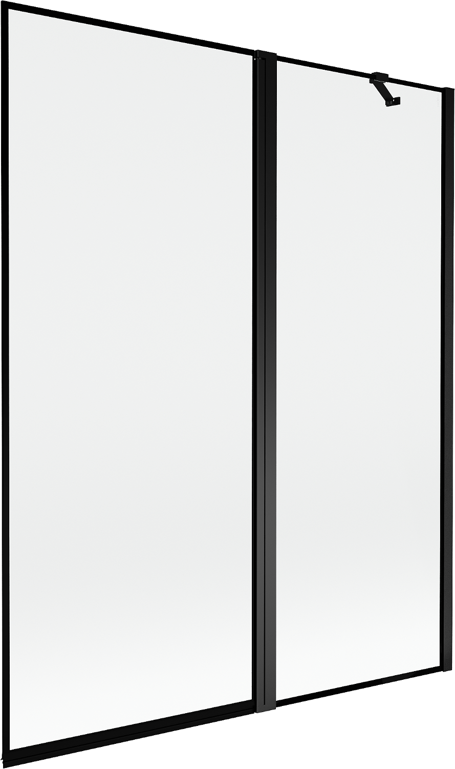 Skärmvägg tillverkad av två vingar med möjlighet att fällas ihop. En sådan lösning sparar mer utrymme i badrummet och möjliggör fri användning av det återstående utrymmet när vi inte använder badzonen.