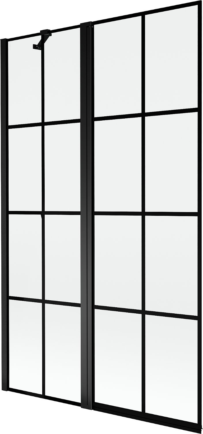 Skärmvägg tillverkad av två vingar med möjlighet att fällas ihop. En sådan lösning sparar mer utrymme i badrummet och möjliggör fri användning av det återstående utrymmet när vi inte använder badzonen.