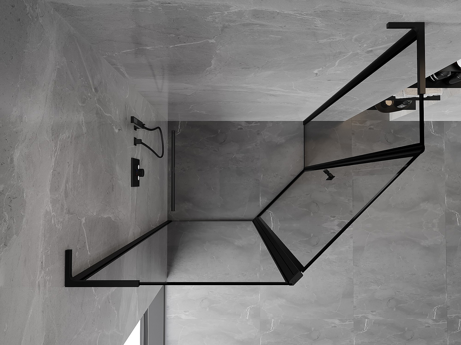 Mexen Mist L asymmetrisk femhörnig duschkabin med gångjärnsdörr vänster 100 x 90 cm, svart ram, svart