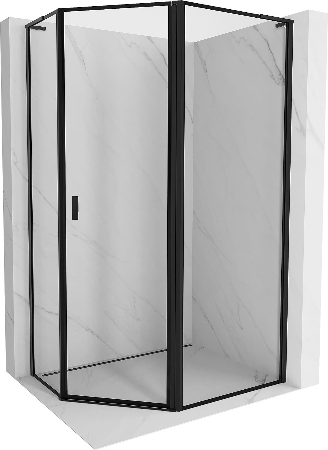 Mexen Mist L asymmetrisk femkantig duschkabin med svängbar dörr höger 100 x 90 cm, svart ram, svart - 8A8L-100-090-70-70-P