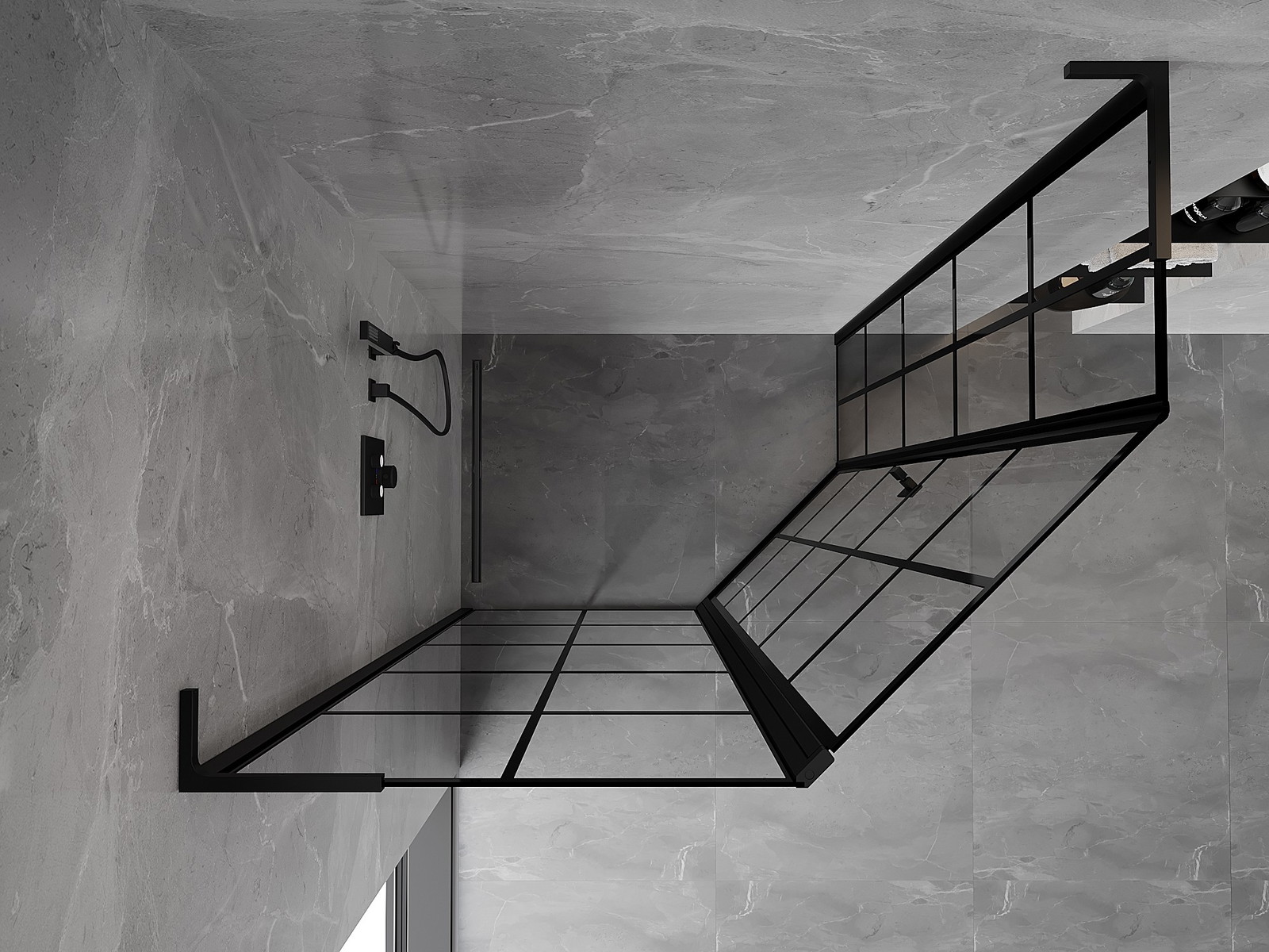 Mexen Mist L asymmetrisk pentagonal duschkabin med svängdörr vänster 100 x 90 cm, svart rutnät, svart - 8A8L-100-090-70-77-L