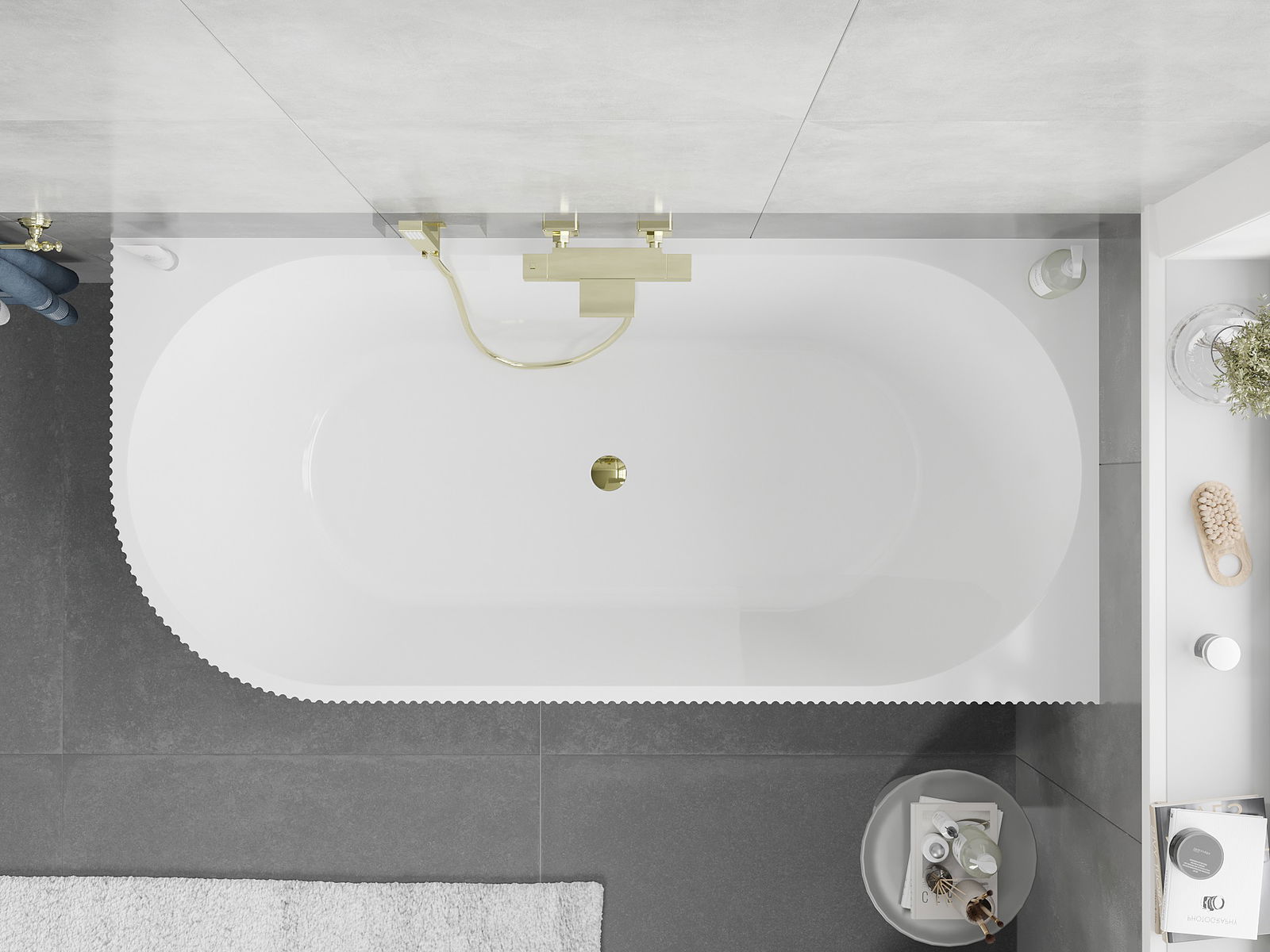 Mexen Silo fristående hörnbadkar höger räfflad 170 x 80 cm, vit, guldöverflöde - 52891708000P-50