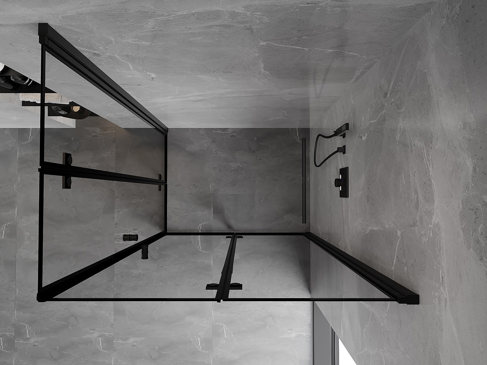 Mexen Mist-F Duo vikbar duschkabin höger 80 x 90 cm, svart ram, svart - 8A6-080L-090P-70-70