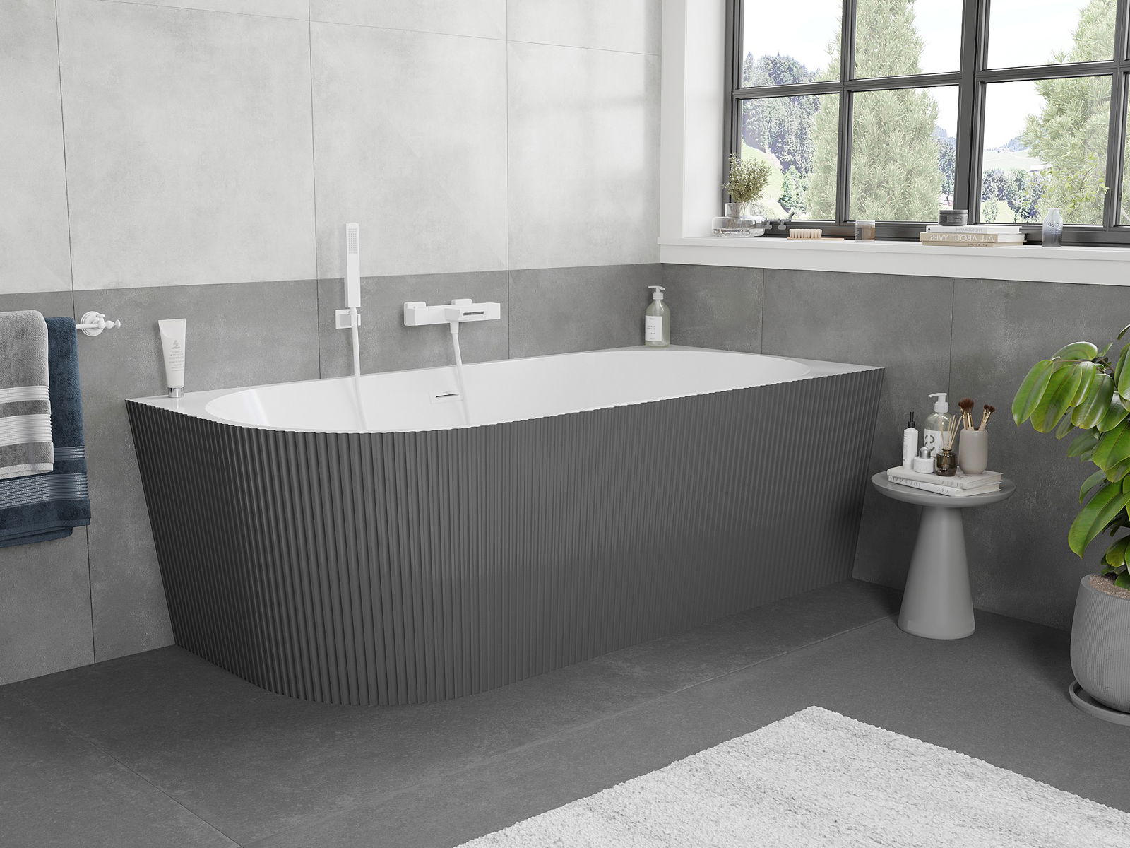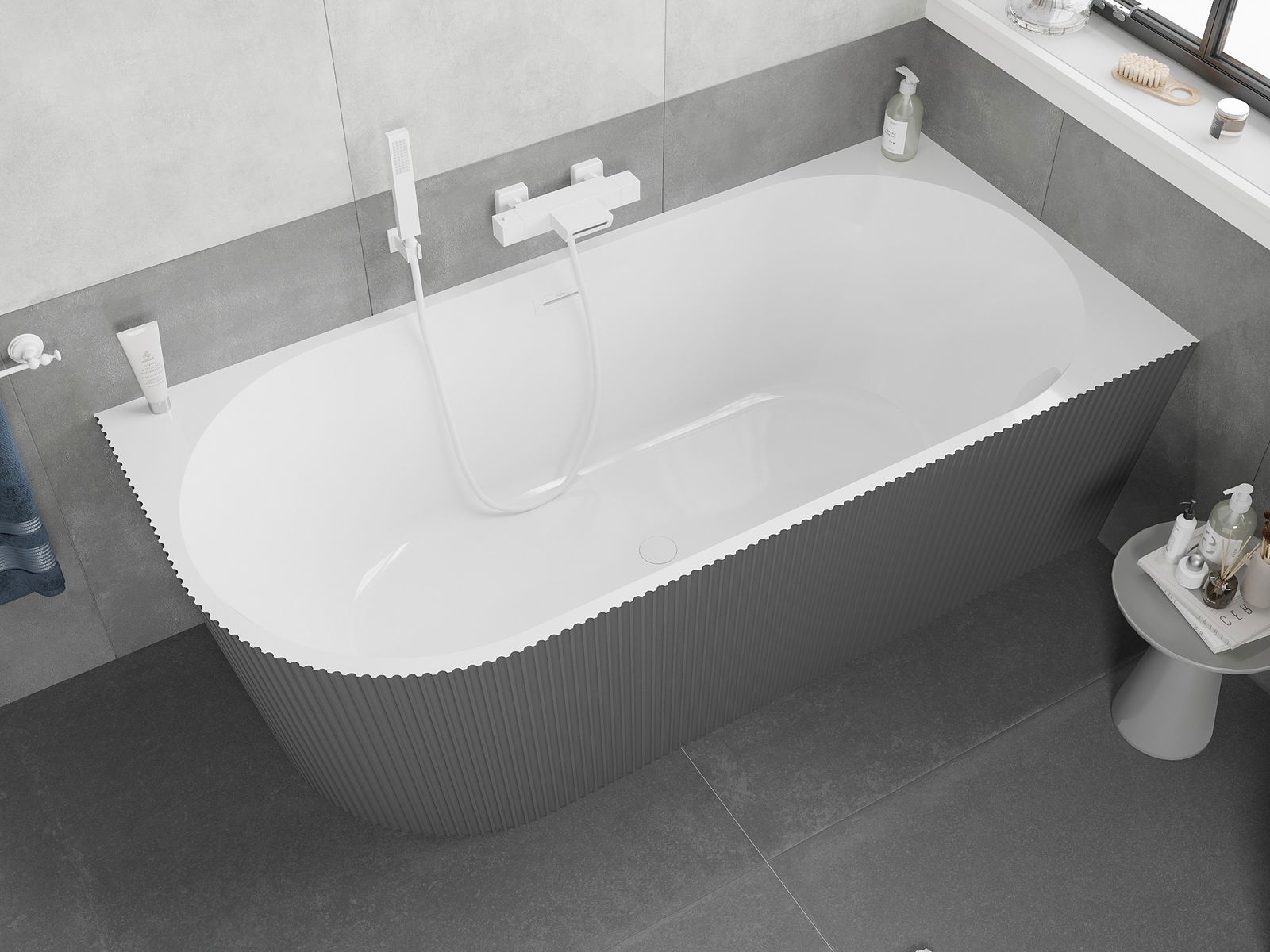 Mexen Silo fristående hörnbadkar höger räfflad 170 x 80 cm, vit/grå, vit överfyllnad - 52891708062P-20